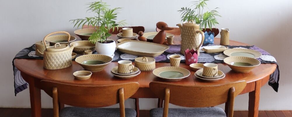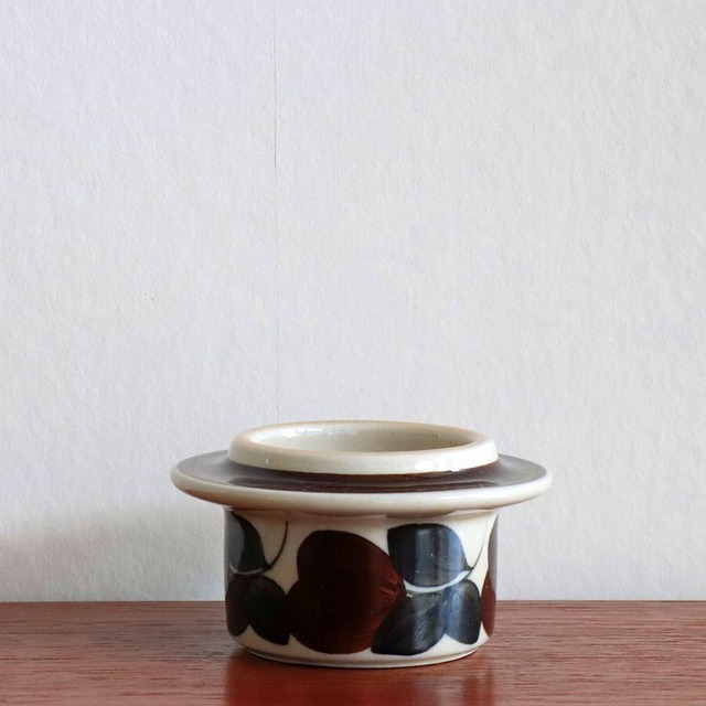 1972-1983年の間、スウェーデンのロールストランドで製作されたAnnika(アニカ)。同社を代表するデザイナー、マリアンヌ・ウェストマンがデザインを手がけたシリーズです。 きなりのベースに、オレンジとブラウンの太いライン。エリザベスやマリアといったシリーズと同じ仕様で、シンプルながらもレトロで上品な存在感のあるお品です。 Annikaはカップ&ソーサーやプレート、シュガーボウルにクリーマー、ポットといったティーセットに加えエッグカップや深方皿、また同じ仕様での時計も製作されています。個別に揃えても可愛いですし、ポイントで挿してもデザインが生きるミッドセンチュリーらしいアイテムです。 サイズ:直径83-102×高さ52 ソーサー:145(mm) *写真では確認しにくいですが、カップ側面に製造上のふくらみがあります。見た目を大きく害してはいませんが、価格はコンディションを考慮したものとなります。