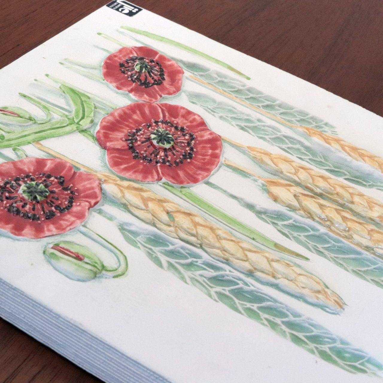 同社陶板の特徴として、製造時にコテやヘラによる成型時の凹凸、焼成時の釉薬抜け・色とび、また製造後の小さな欠けなどが比較的おきやすいアイテムとなります。また同じモチーフの製品でも製造時の個体差により若干のサイズ差が見られる工房となります。