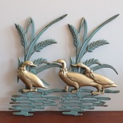 ノルウェーから届いた鳥の壁飾り。3羽のアヒルが水際で佇む牧歌的なデザインです。