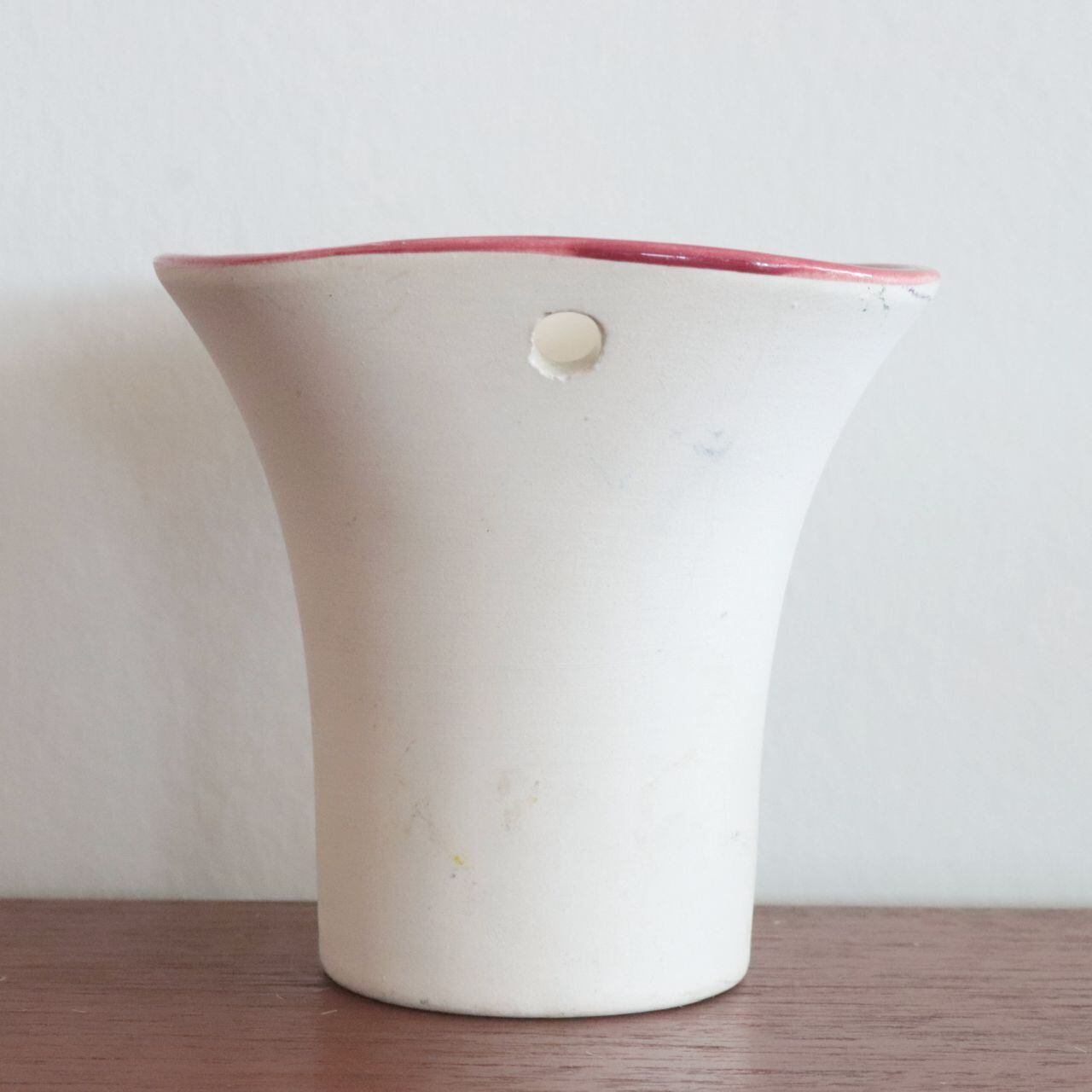 1960‐70年代頃にスウェーデンで製作されたフラワーベース。壁に掛けられるよう、背中に通し穴が開いたフォルムです。