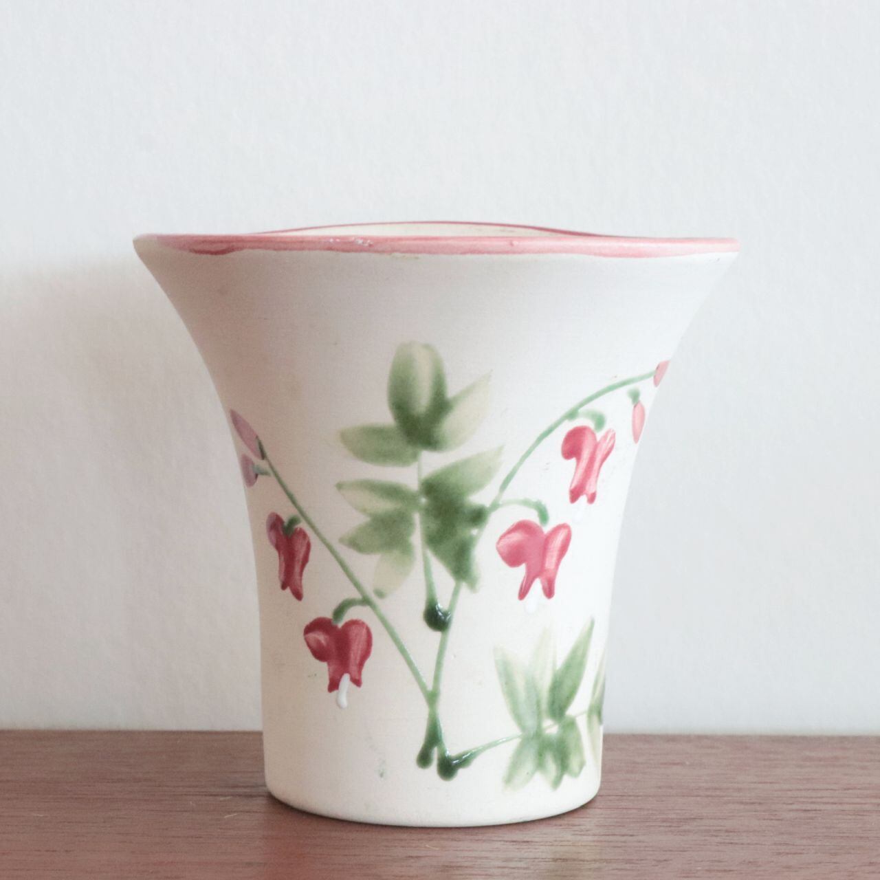 描かれた花はケマンソウでしょうか、ハート形の花がとても愛らしい野草です。絵柄自体の主張はさほど強くなく、飾るもの次第でまた表情を変えてくれそうなアイテムです。