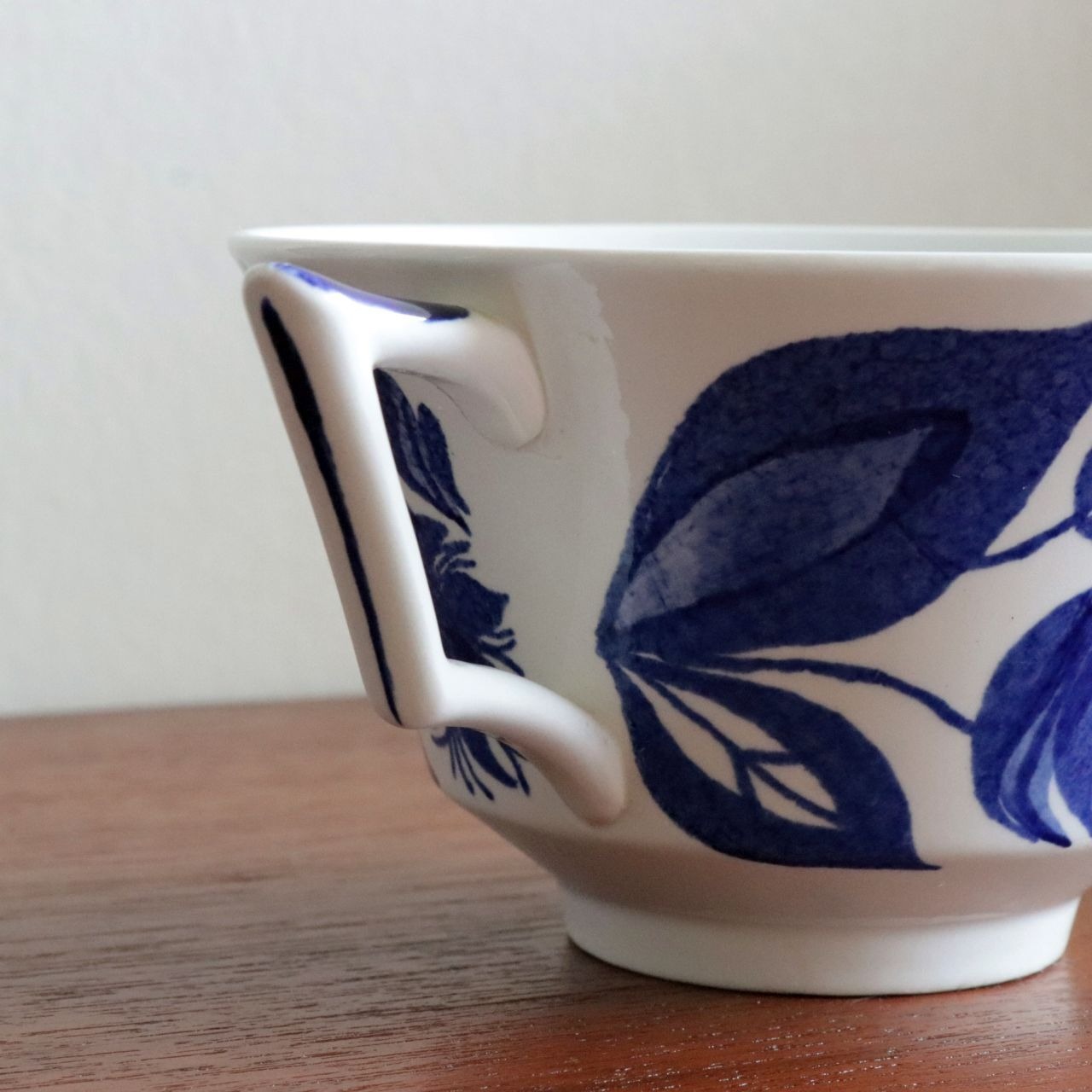 ヴィルヘルム・コーゲに師事したウルスラ・プリンツは1939-1951年の12年間、グスタフスベリで活動しています。彼女の名前を冠したこのカップ&ソーサーUrsulaは1940年代に同社で製作されたもので、手彩色で描かれた青の濃淡のみという古典的な上品な装飾をしたシリーズとなります。