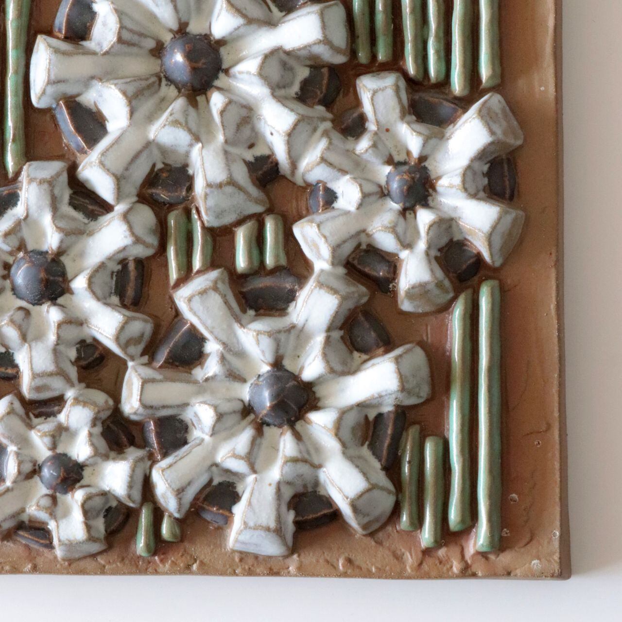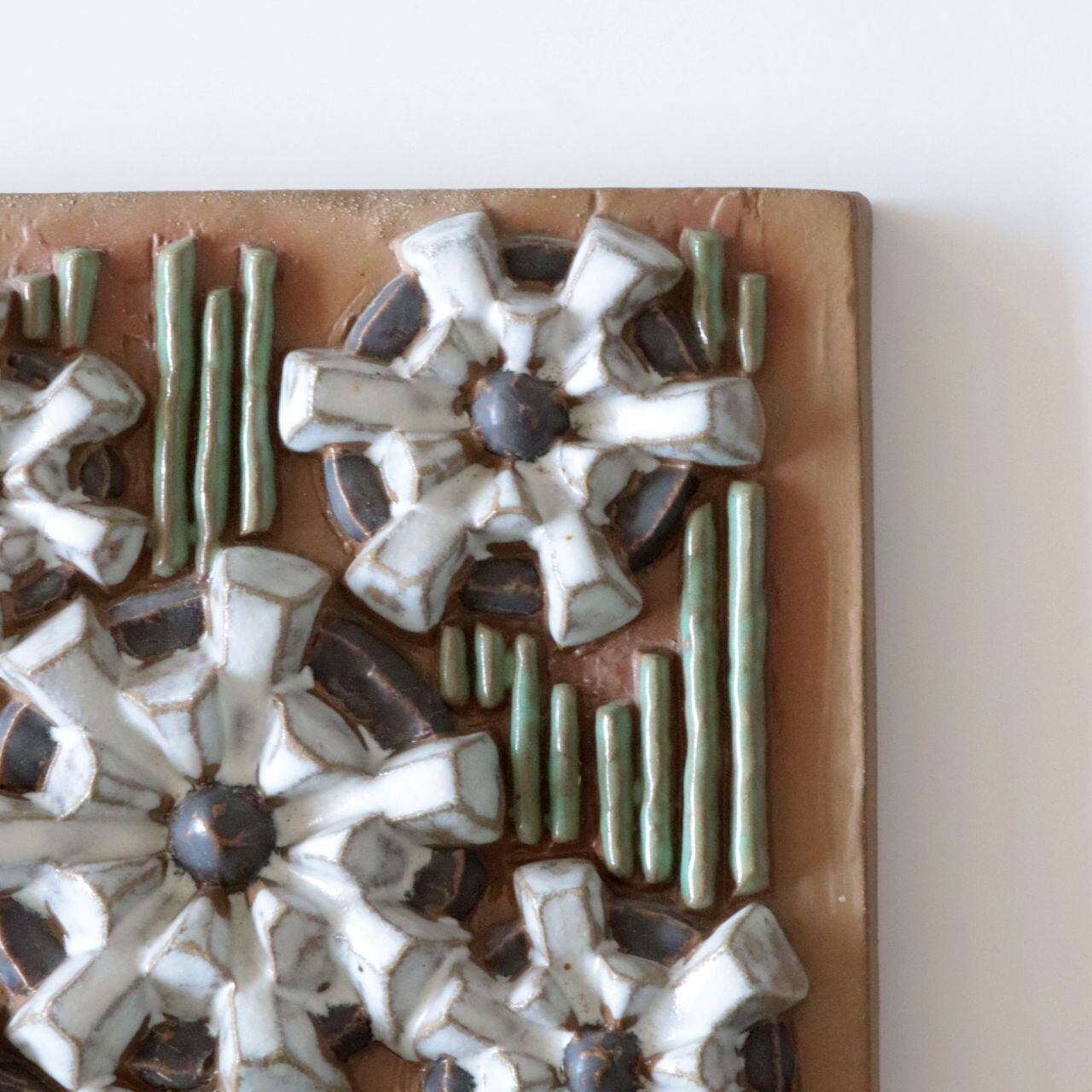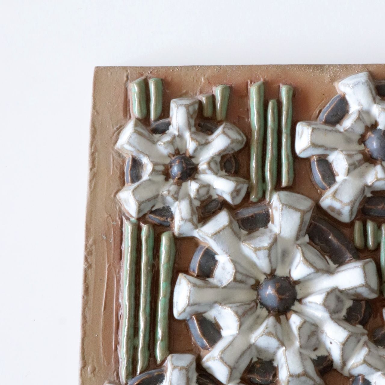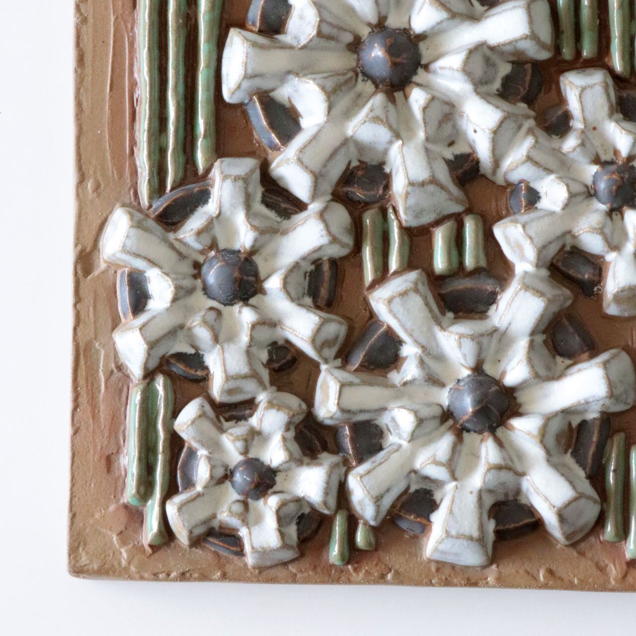 1970-80年代、デンマークのMichael Anderson&Sonで製作された花の陶板。同社を代表するデザイナーで、ドイツ出身のMarianne Starck(マリアンヌ・スタルク)がデザインを手がけた作品です。