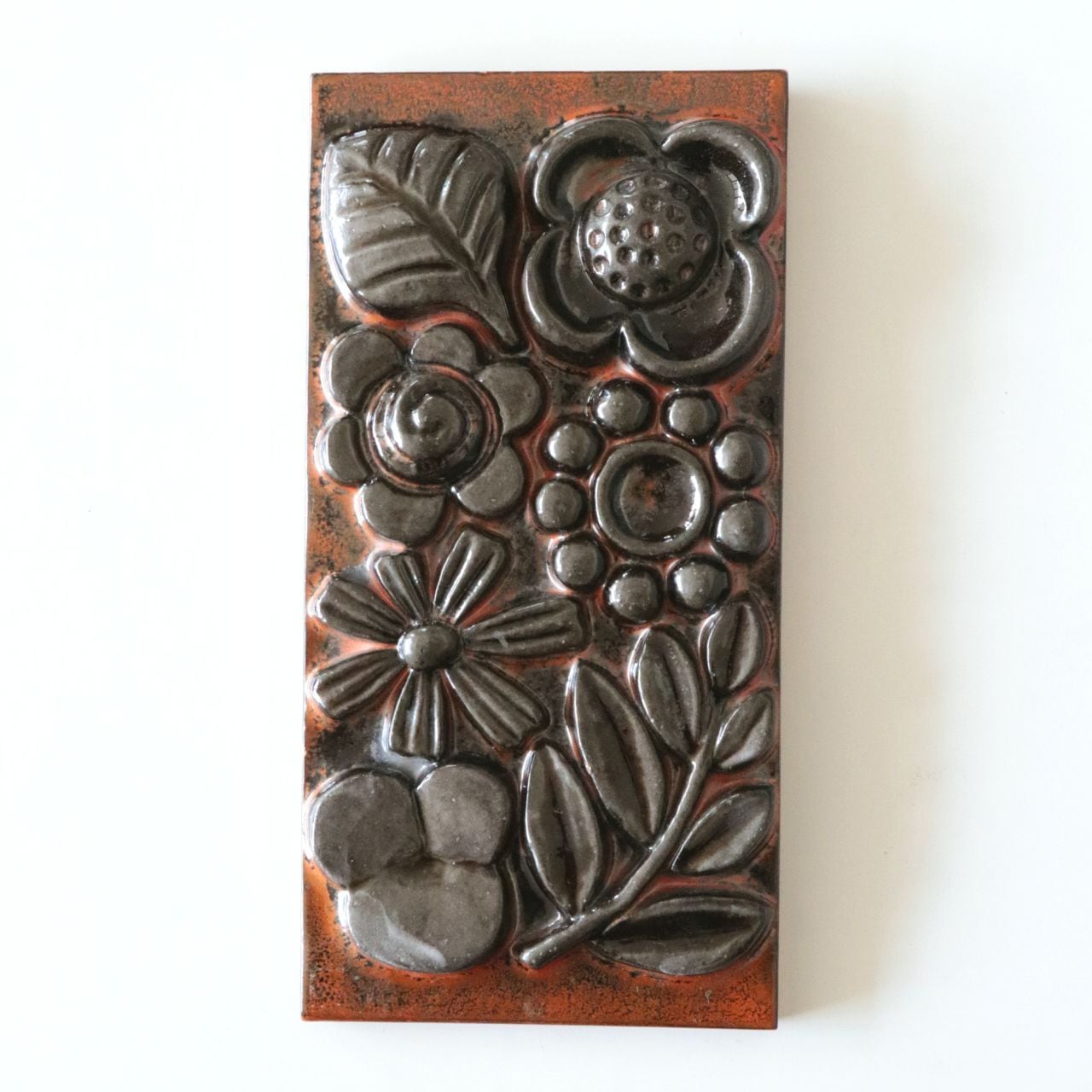 【c7116】花の陶板(30cm) / Fleur [Gefle/Sweden]