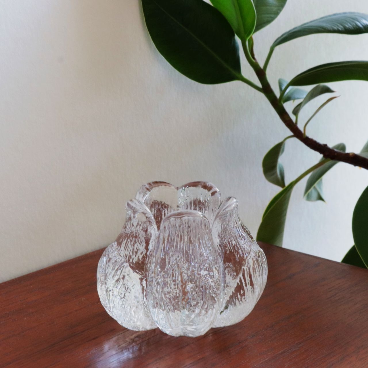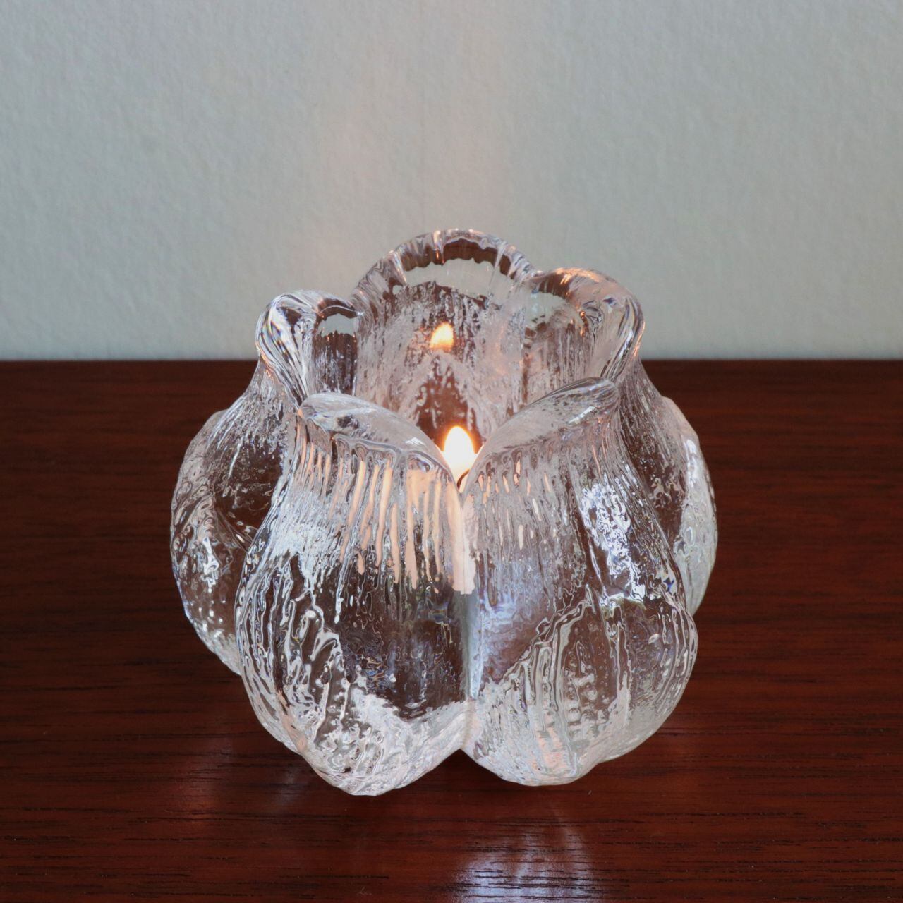 1970年代に製作されたものと思われます。このシリーズはつぼみに近い状態から満開まで3デザインが製作されており、蝋燭の灯りが華やかな表情となる小さくて美しい作品です。