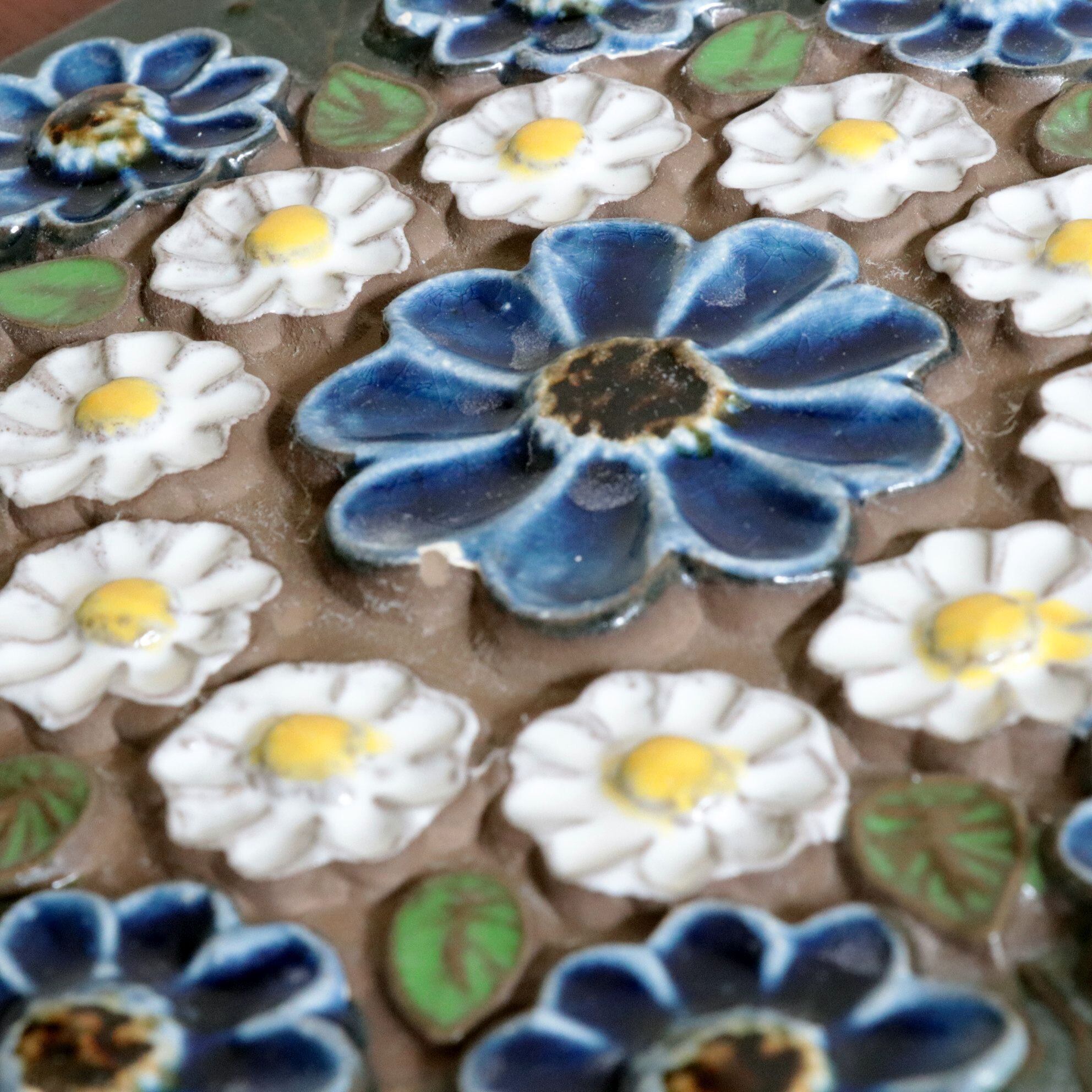 同社の代表的デザイナーAimo Nietosvuori による作品で、正方形の形状に放射状に描かれた花がとても華やかで楽しい陶板です。背面には通し穴と針金が付いていますので、そのまま壁に飾ることも可能です。