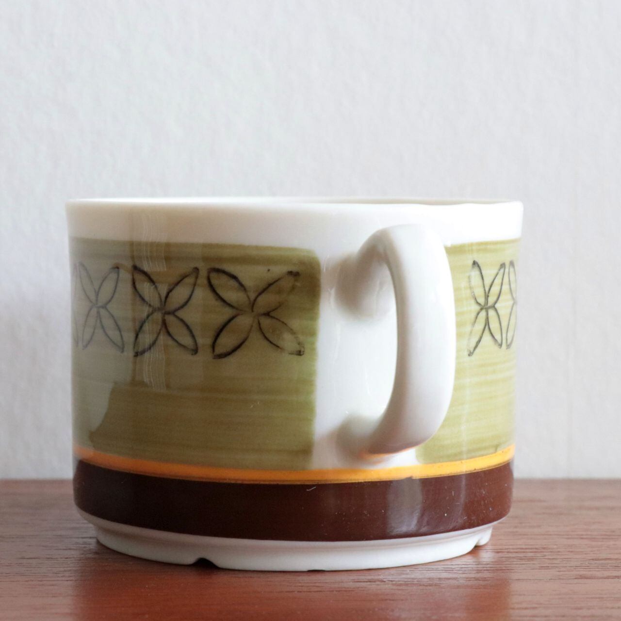モスグリーン、イエロー、ブラウンと穏やかなアースカラーで配色されており、意匠化されたシンプルな四つ葉模様が良いアクセントとなっています。