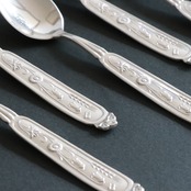 スウェーデンのデザイナー、グナー・ニールンドがデザインしたカトラリーシリーズ”Romantik”。EXALP(Extra Prima Alpacca≒洋白、優れた耐食性を持つ銀色の合金)で製作されています。