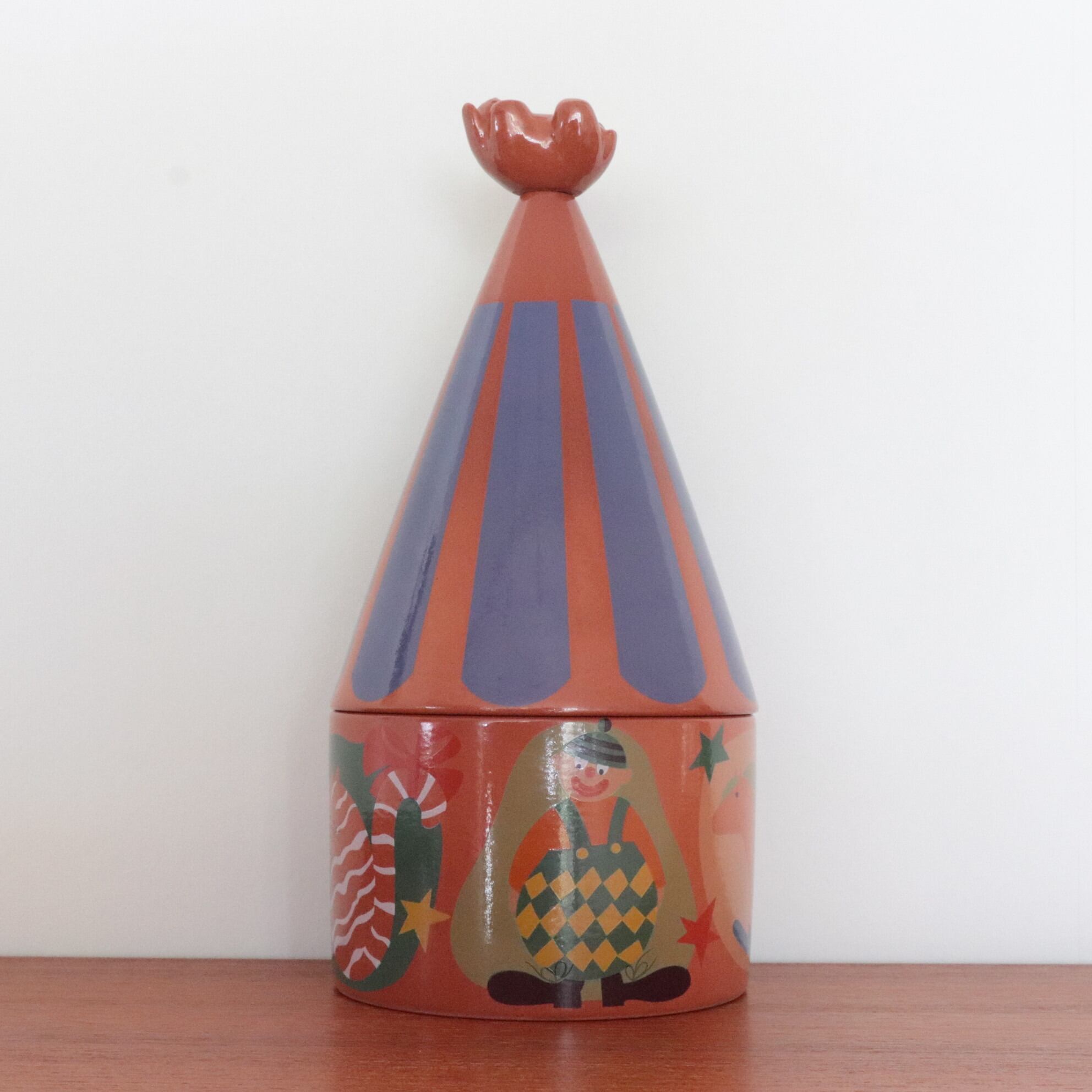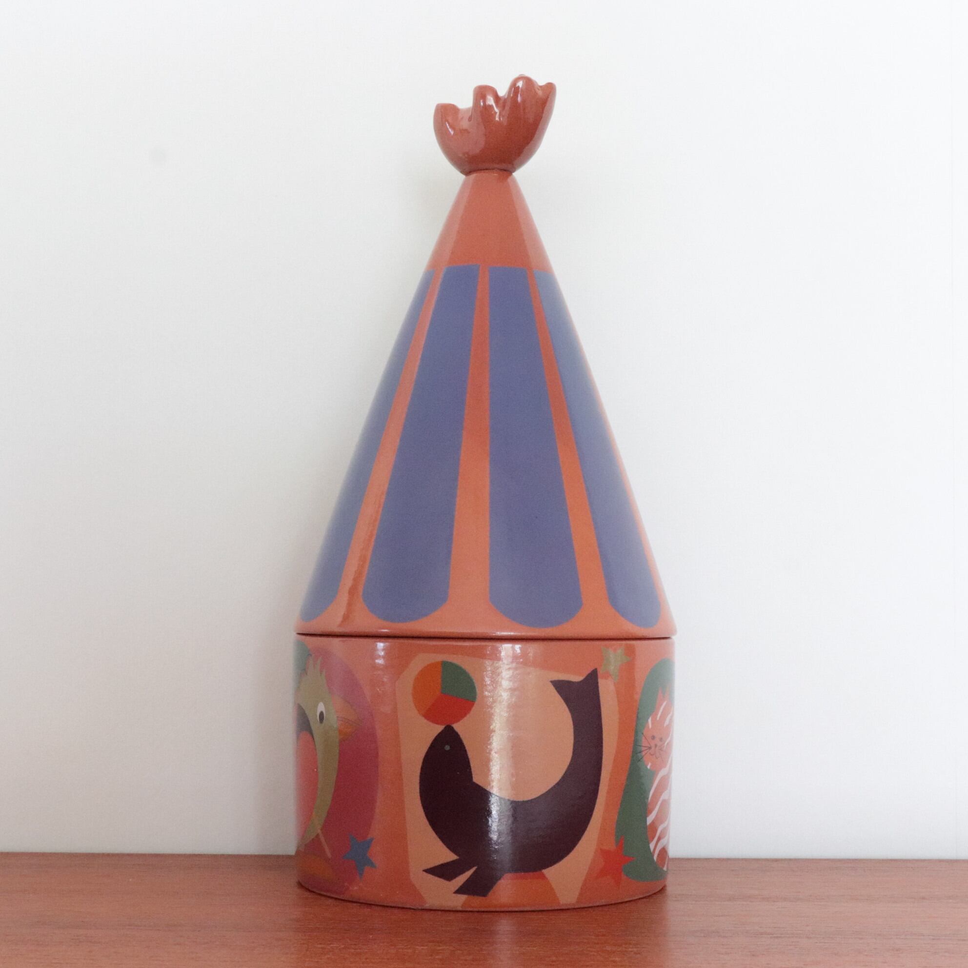 柄は製造の度に代わり、モノトーンのものや花柄のもの、また今回のようなサーカスの柄などが製作されました。市場に出回る作品はごく少数で、見かける機会がごく少ないヴィンテージ作品です。