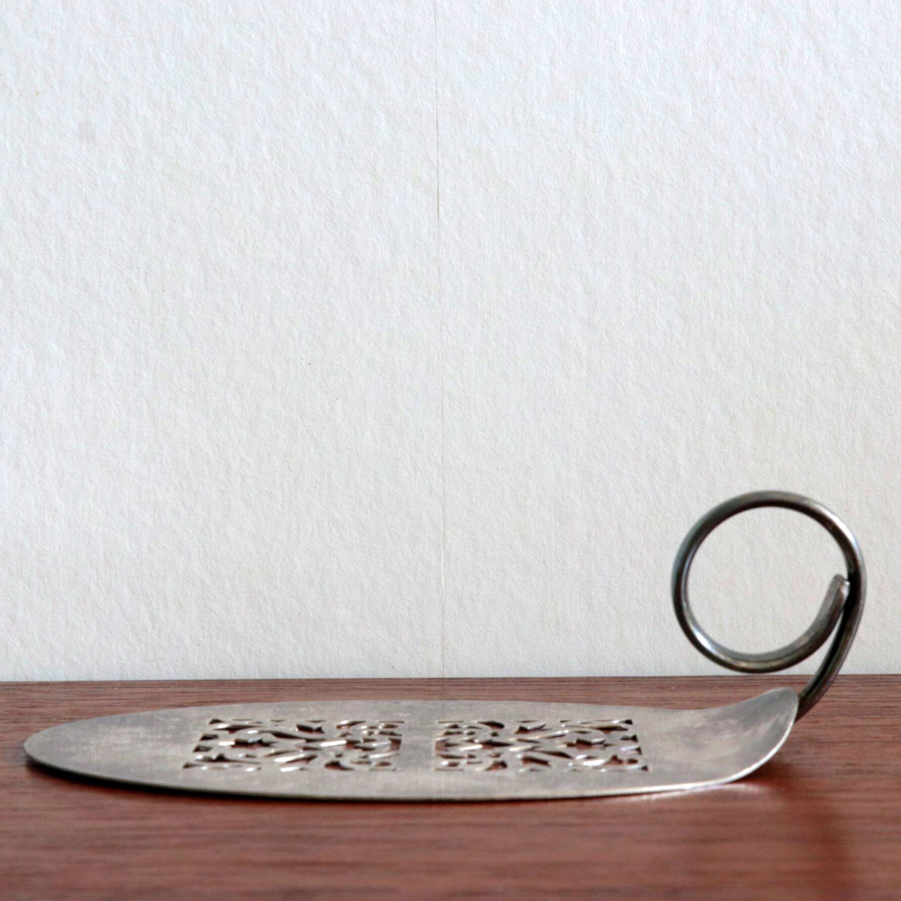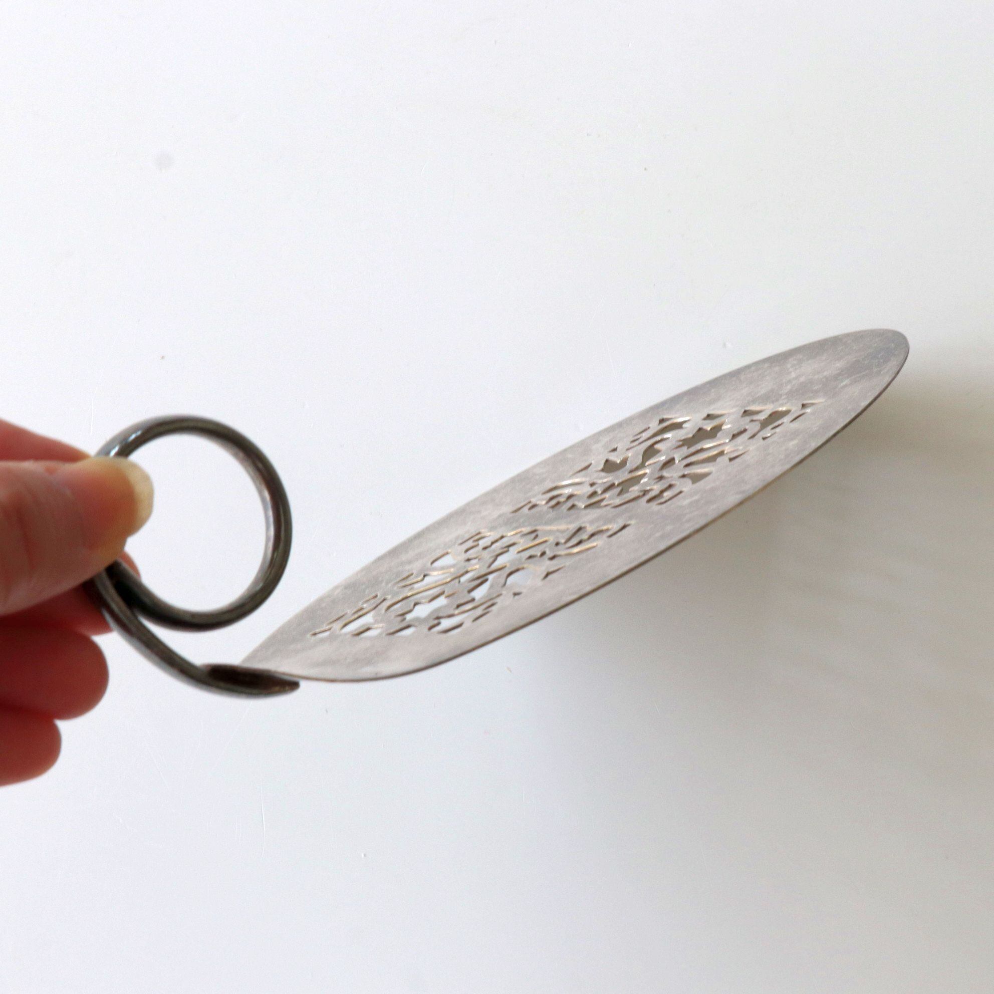 この瀟洒なケーキサーバーは、シンプルながらも洗練されたデザインが魅力的です。金属の落ち付いた輝きは、長い年月を経てもなお美しく、手に取るとその繊細なフォルムが調和する心地よさを感じさせます。