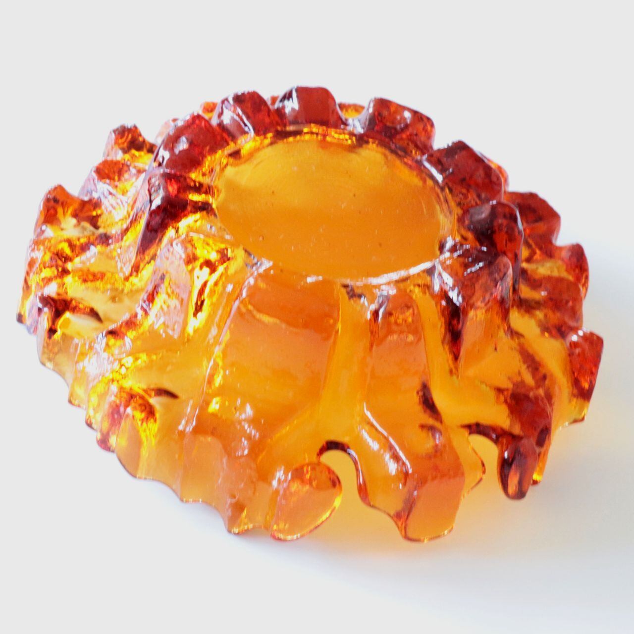 1970年代、フィンランドのMuurla製キャンドルホルダー。 直径13cmの程よいサイズ感に、赤みを帯びたガラスの揺らぎが美しく映える一点です。