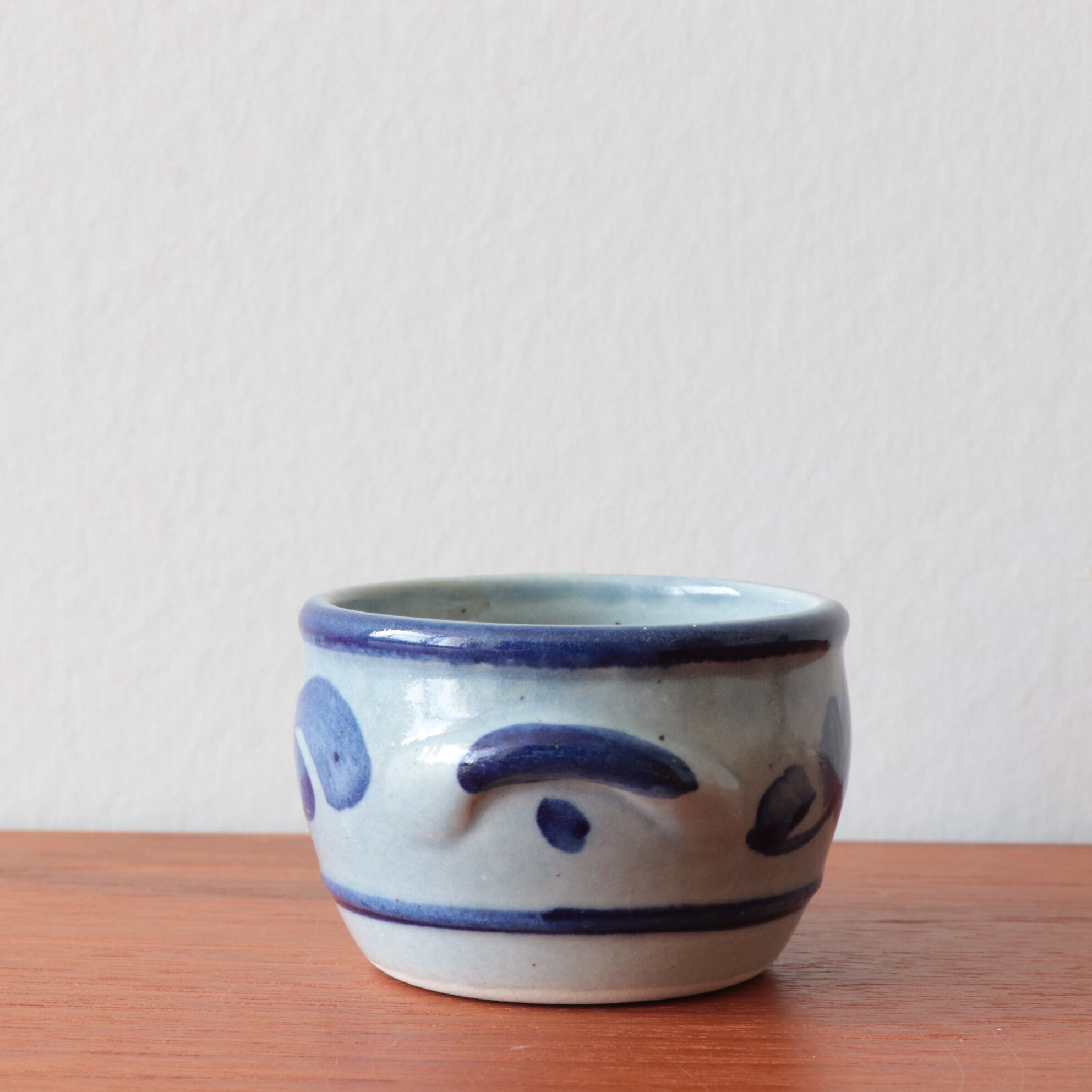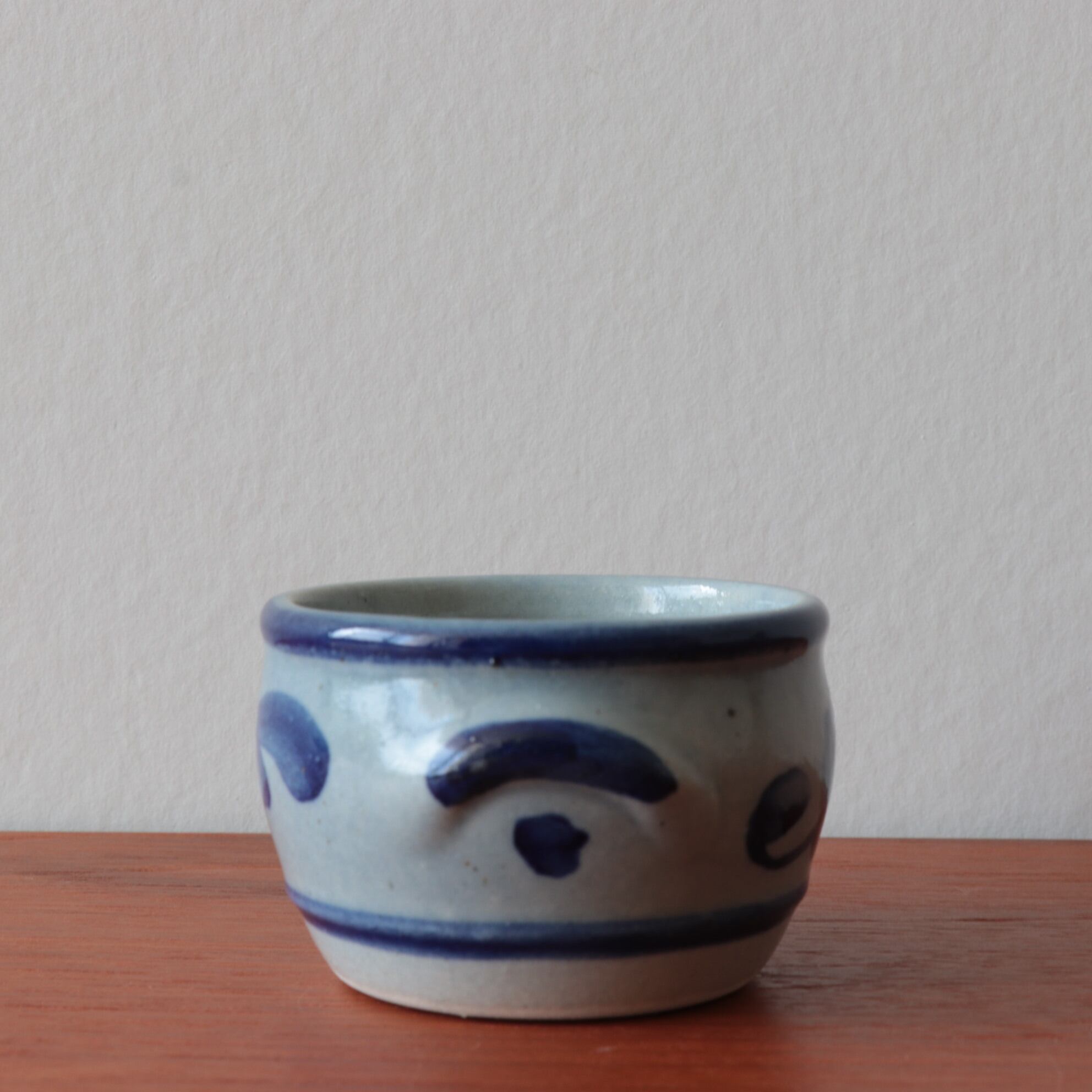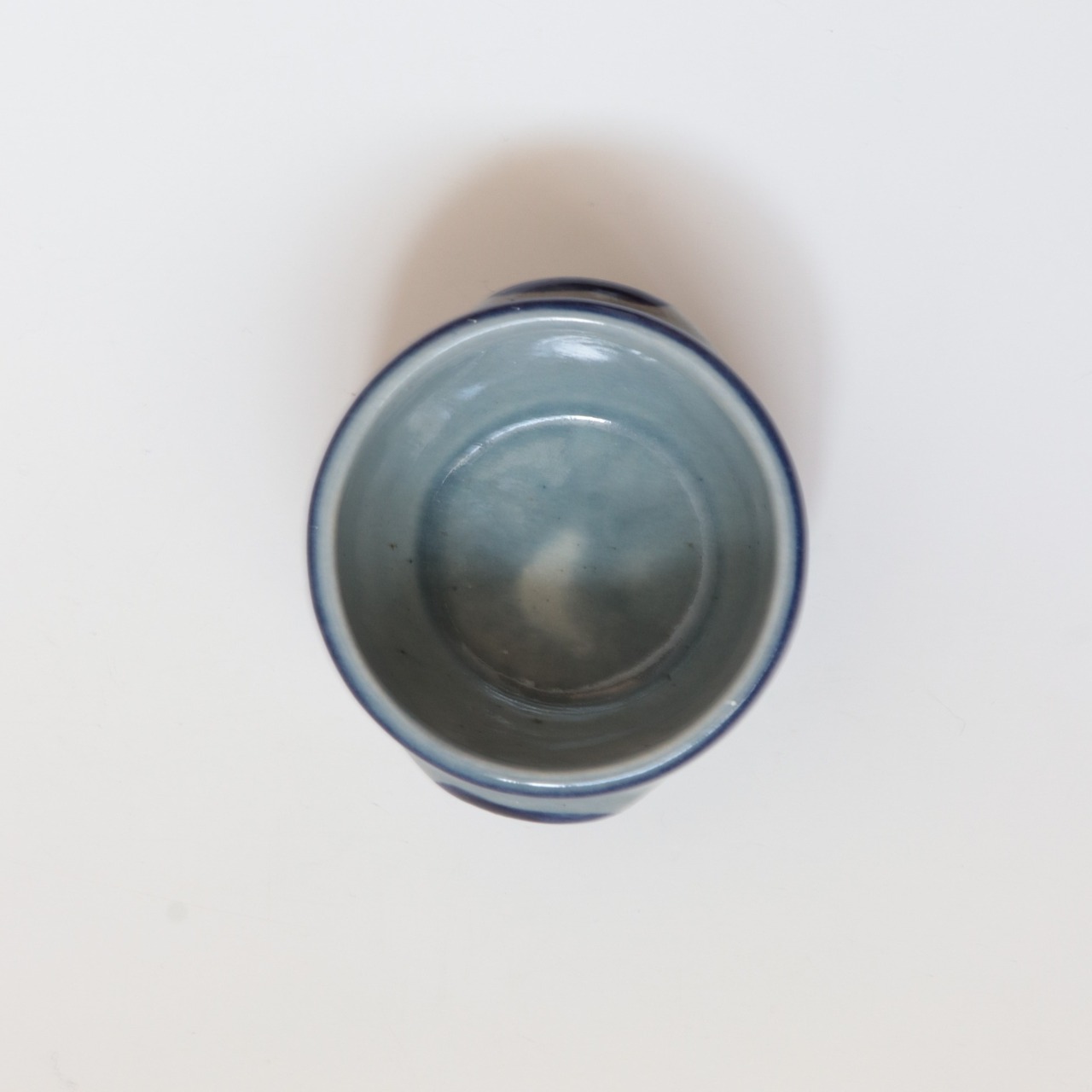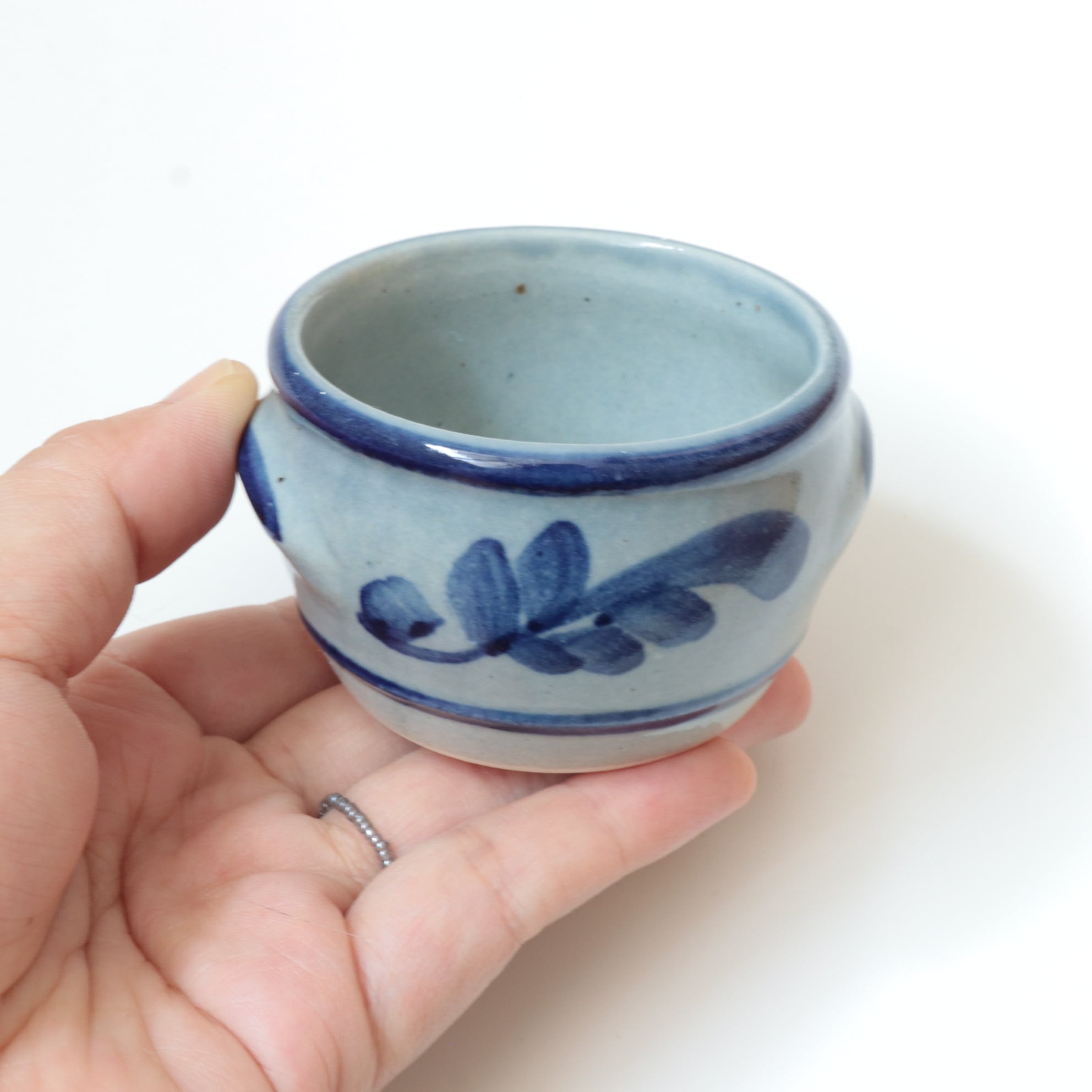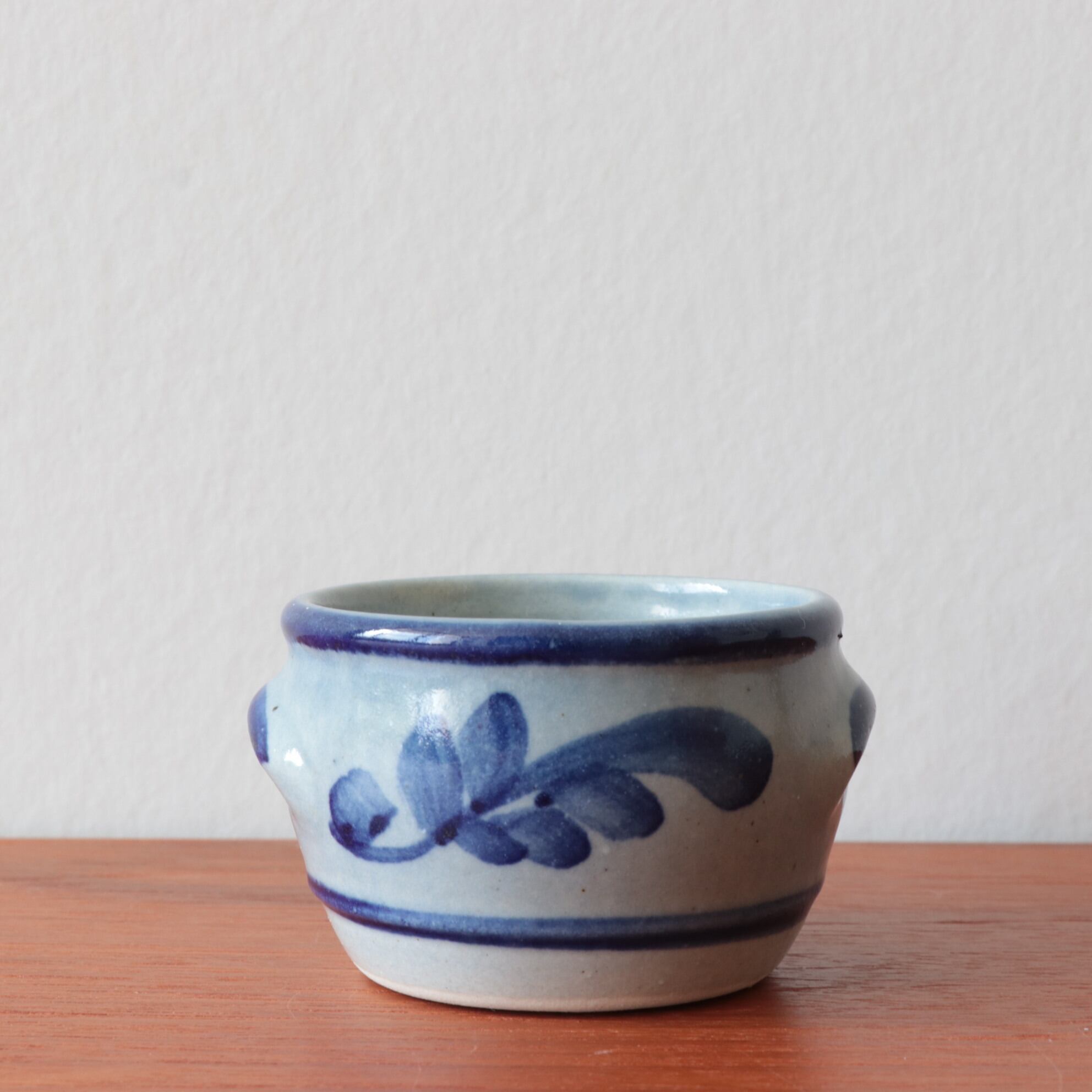 薄い青地の本体に、手彩色で描かれた植物柄。小さなサイズながら、良い存在感を示してくれるアイテムです。