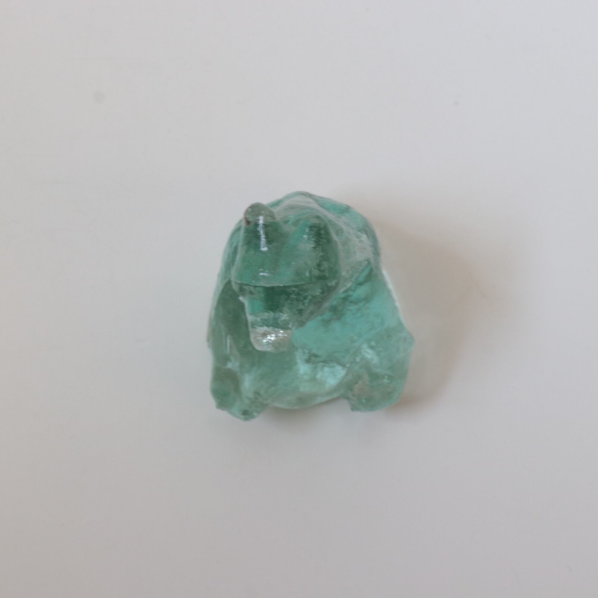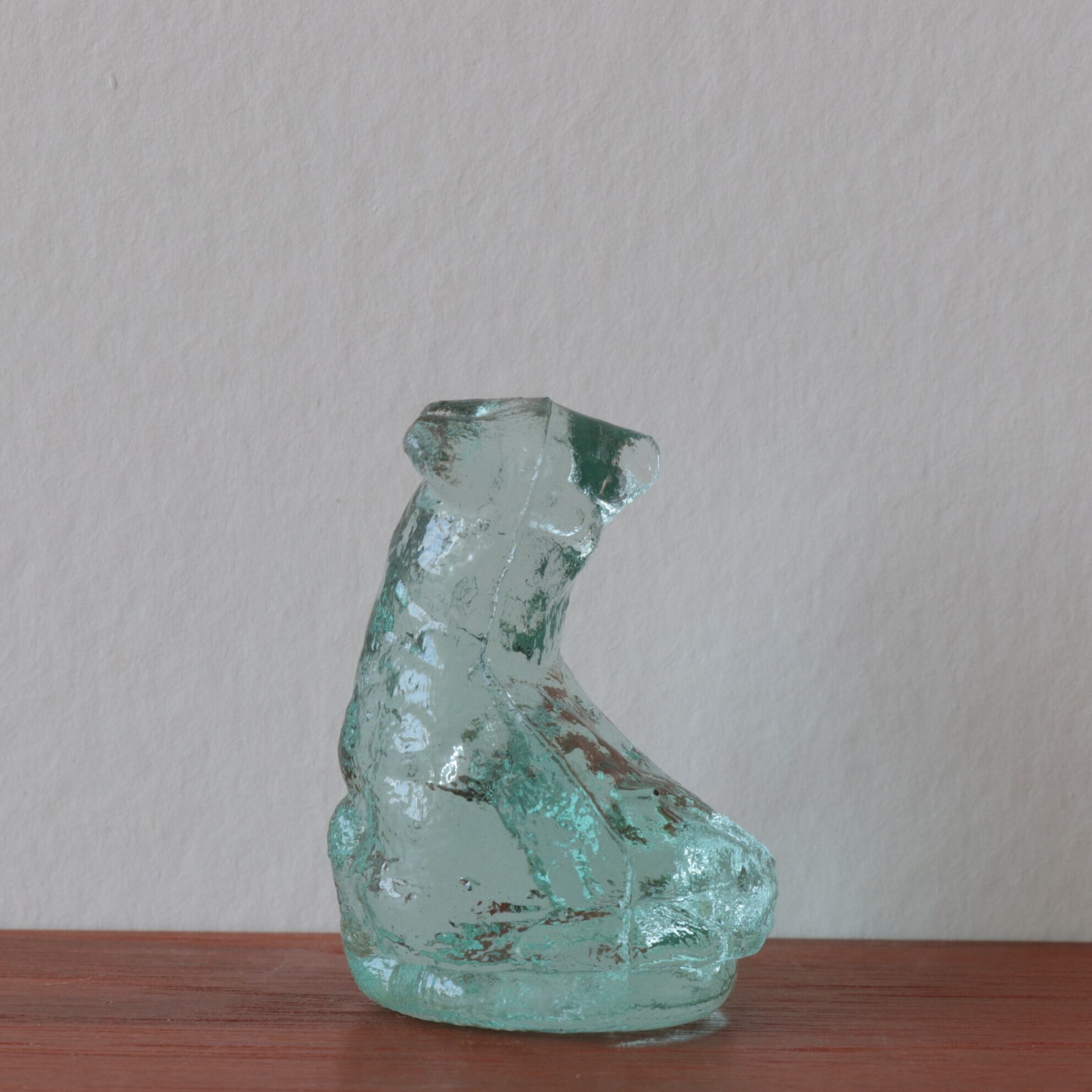 1930-40年代、スウェーデンのAlsterbroで製作されたクマのフィギュア。ワセリンガラス(ウランガラス)で製作されたもので、紫外線(ブラックライト)にあてると蛍光色に光るのが特徴的です。
