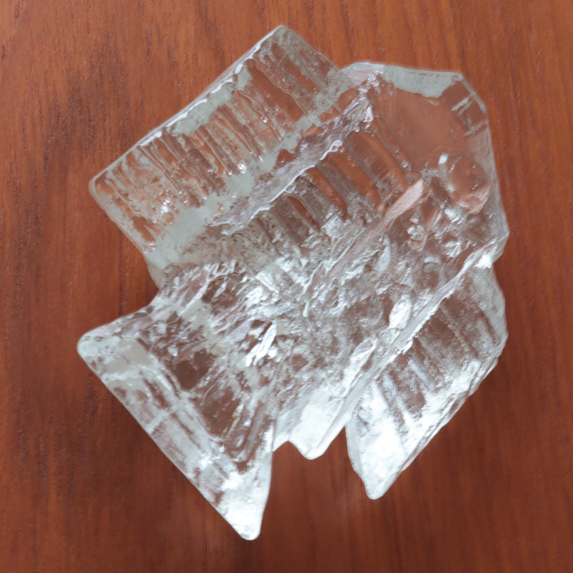 しっかりとした重量感のある作品で、窓辺に飾ったり、ペーパーウェイトのような役割でも活躍してくれる作品です。ごつごつしたガラスは光を乱反射させるので、外の光が入るような場所で飾ってもらうとさらに良い印象が出そうな気がします。