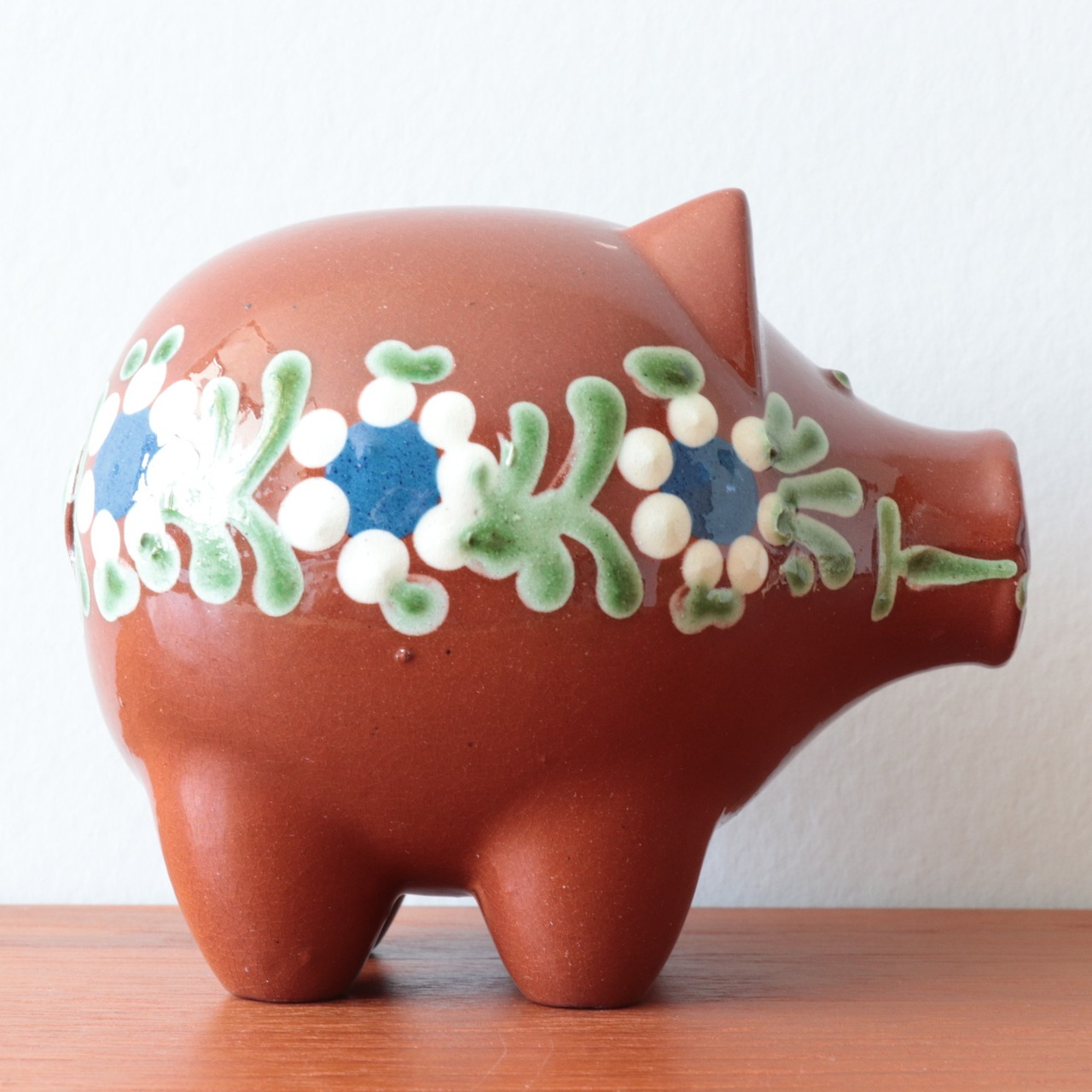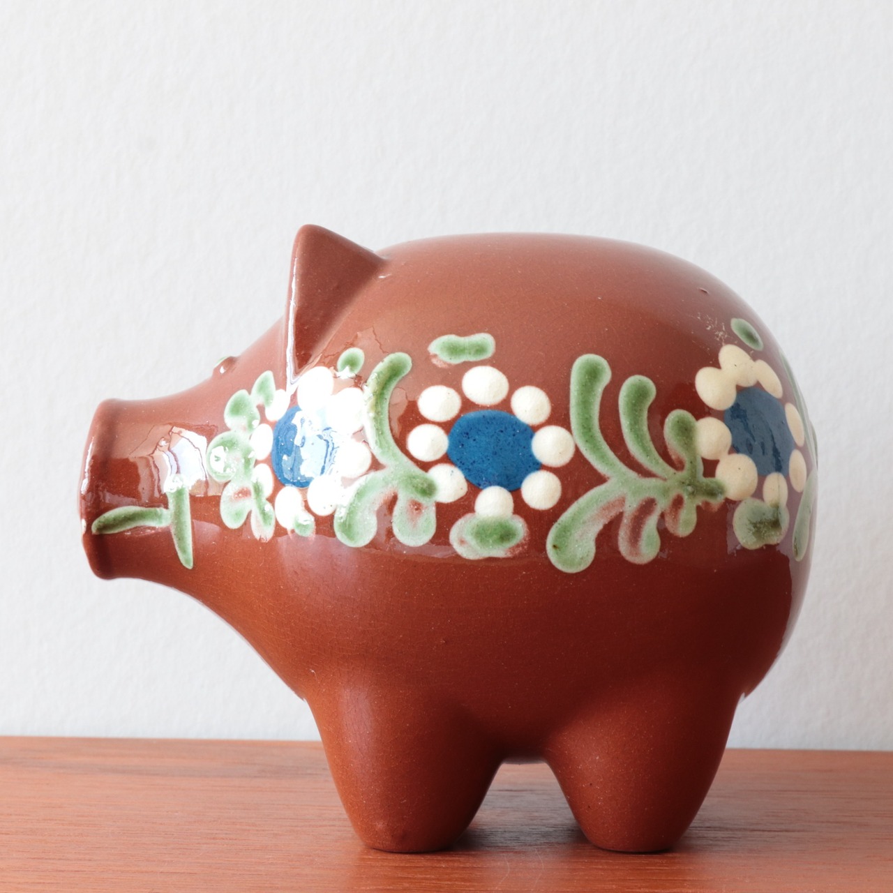 スウェーデンのGuldkroken Keramikで製作された豚の貯金箱。同社は1946年、Bengt Oscar GrunditzとMartha夫妻によってスウェーデン中部のヴァターン湖西岸で設立された会社です。