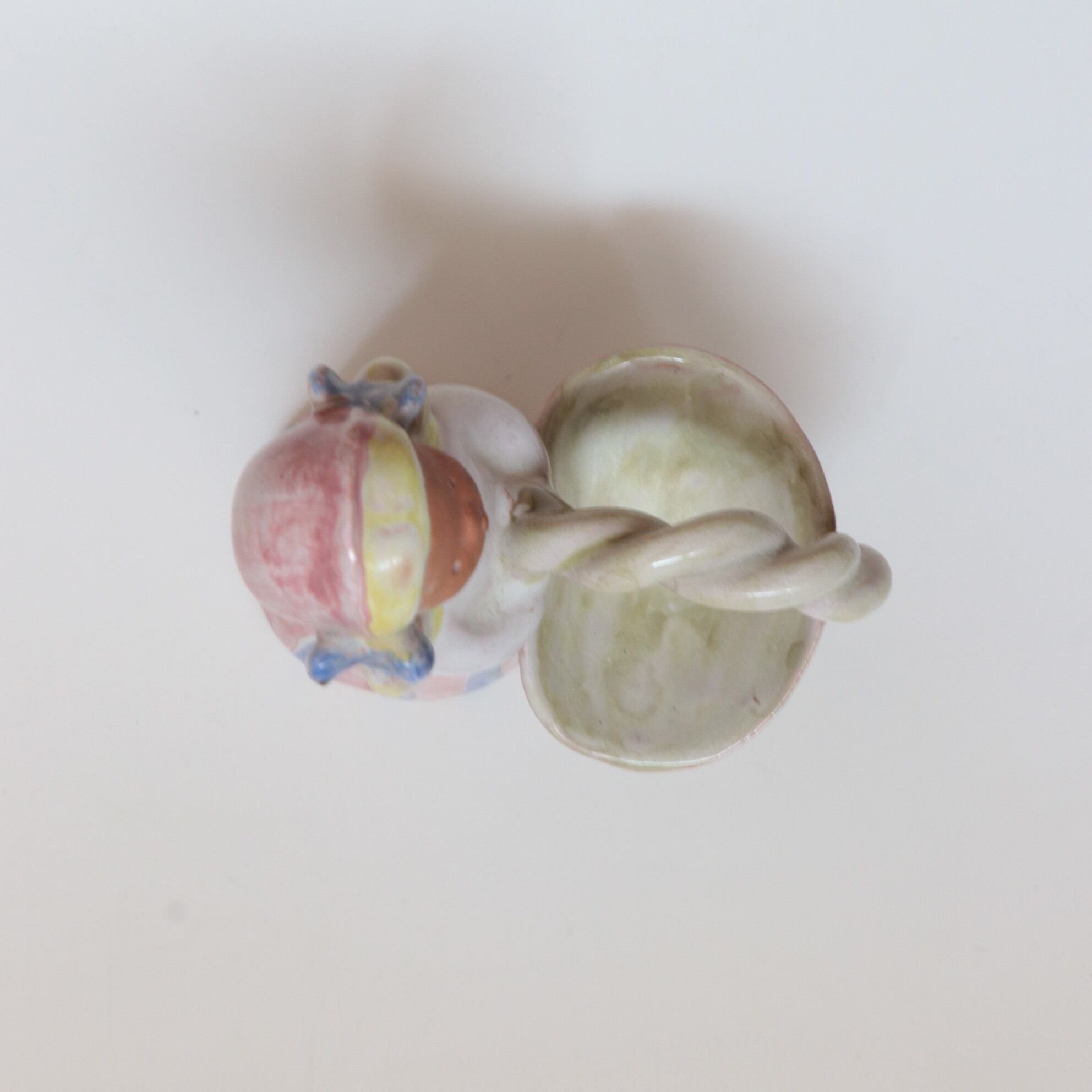 Gunnar Nylmanによるデザインのこの少女のフィギュアは、可憐さと実用性が絶妙に調和した作品です。広げたカゴには花やドライフラワーを小さく置くことができるデザインが特徴です。この細やかな工夫が、見た目の愛らしさだけでなく、インテリアとしての実用性も高めています。