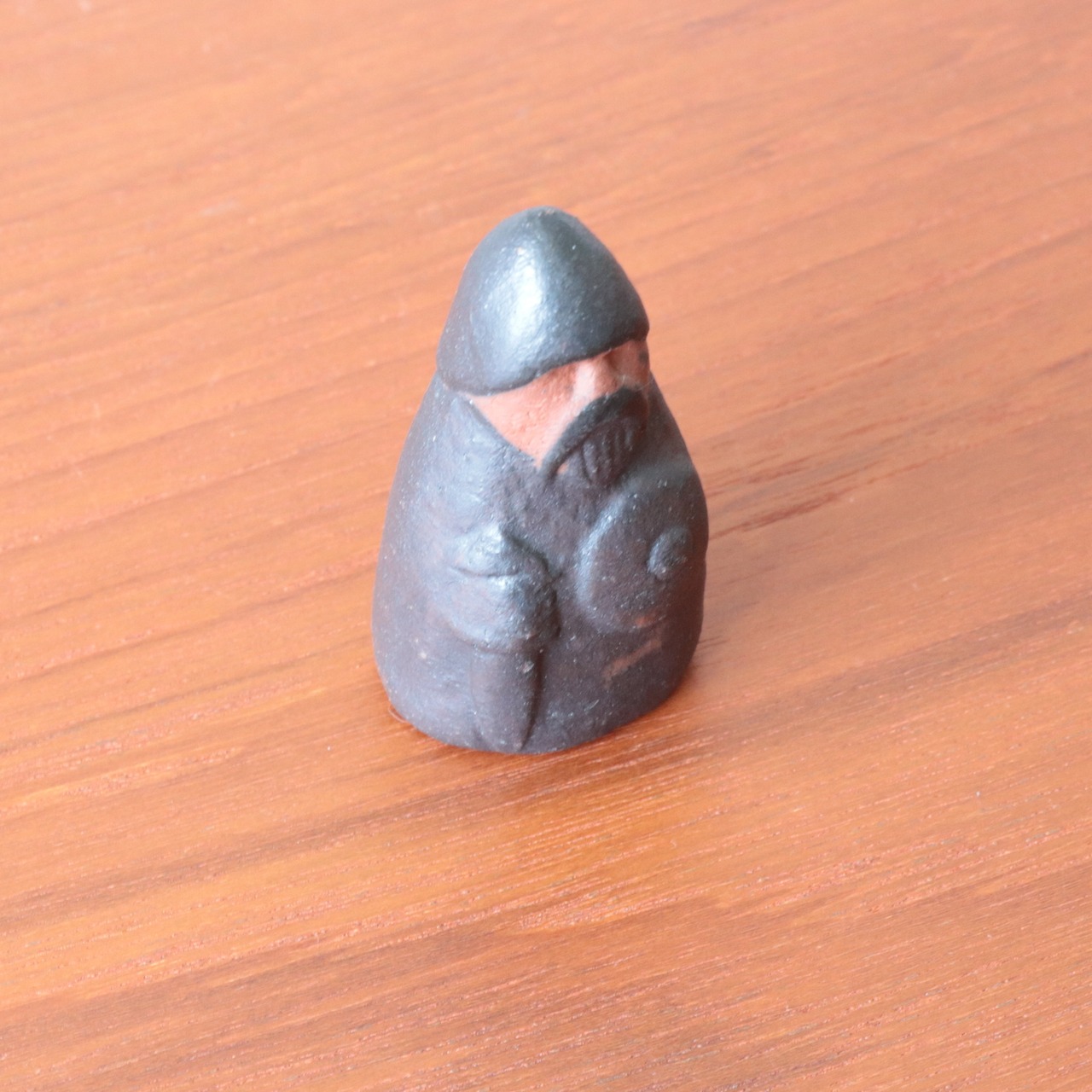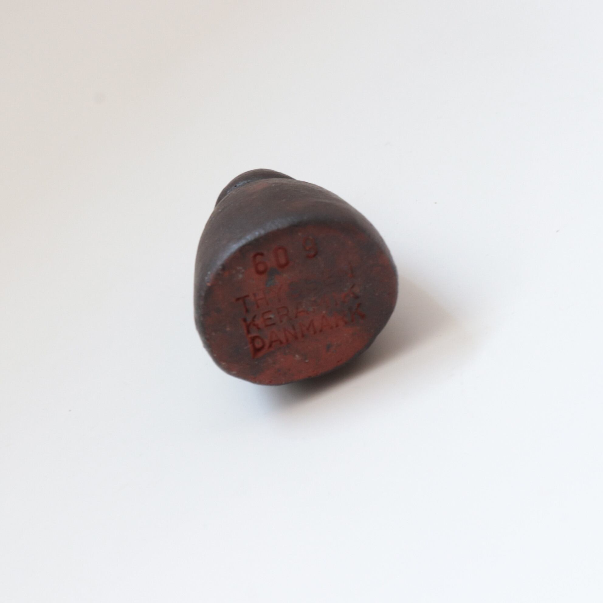素焼きの風合いを生かした作品が多く、北欧のシンプルなラインに濃い茶色の色付けを施されており小さくシンプルながら洗練された印象のある作品です。
