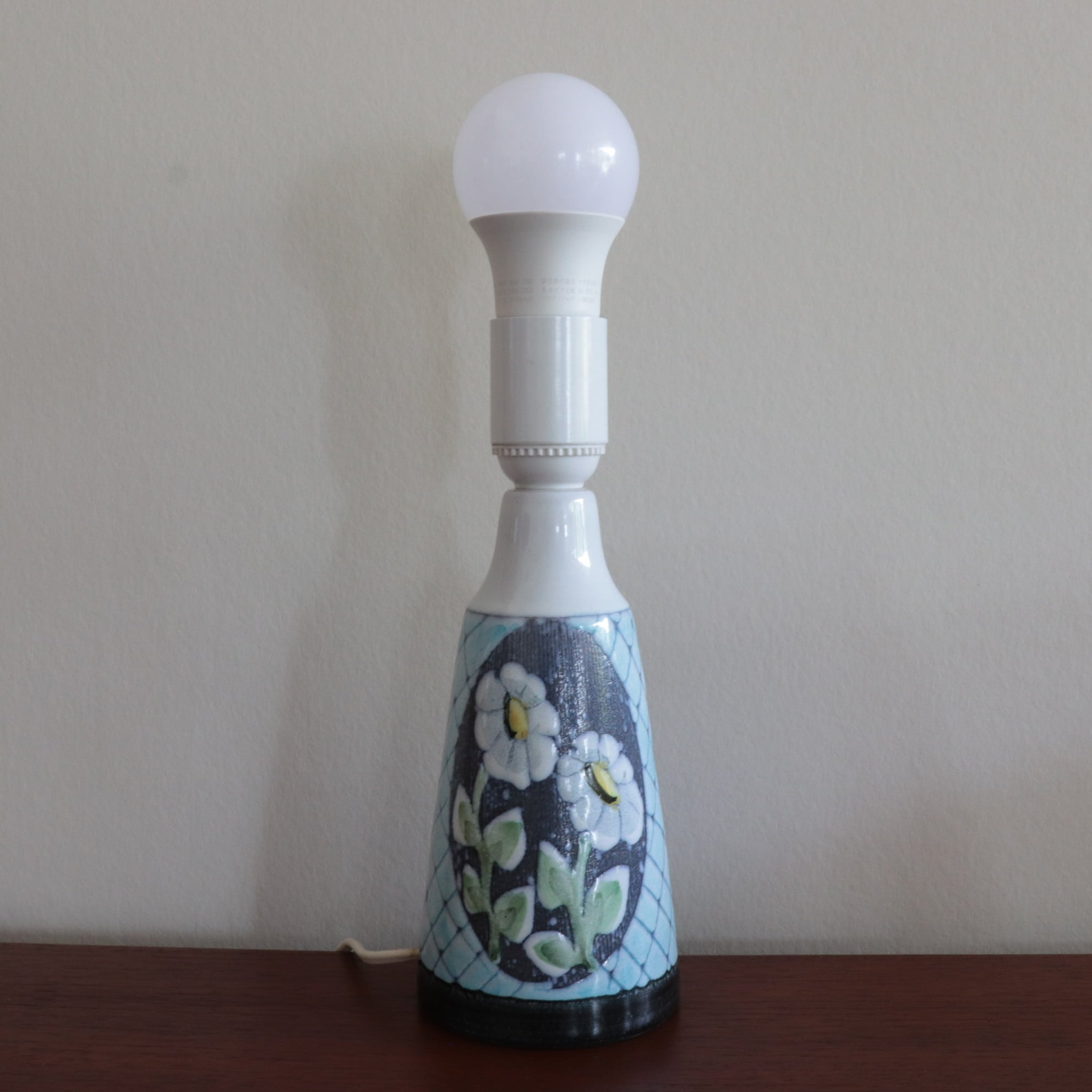 1960-70年代スウェーデン製のヴィンテージテーブルランプ。このランプを製造したNila Keramikは、1957年から1972年にかけてスウェーデン西部のアーリングソース(Alingsås)で活動していた陶芸工房です。創業者のニルス・セリン(Nils Selin)とラーシュ=エリック・エリクソン(Lars-Erik Eriksson)の名前を取って名付けられました。