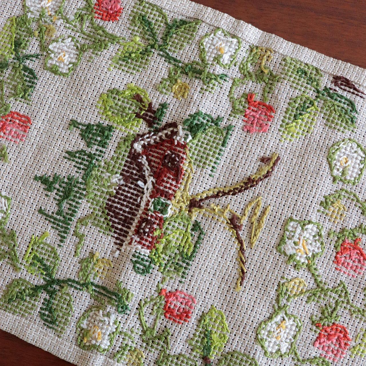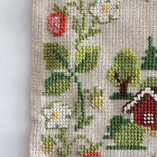 1960ー70年代頃、スウェーデンで製作された手刺繡のタペストリー。スウェーデンらしい家が描かれた牧歌的な作品です。
