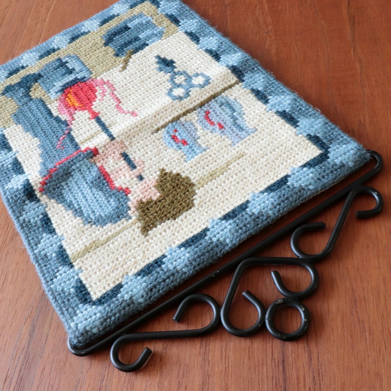 1960ー70年代頃、スウェーデンで製作された手刺繡のタペストリー。「鍛冶」と「手織物」と伝統的な仕事をテーマにした作品です。