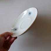 Jupiter=木星を意味する言葉。放射状に輝く星が描かれており、とても印象的です。プレートやカップのサイズによってその星の配置は変わり、ゆっくりと揃えていく楽しみもあるようです。縁は金彩が施されており、より上品な印象を高めてくれる仕上がりとなっています。