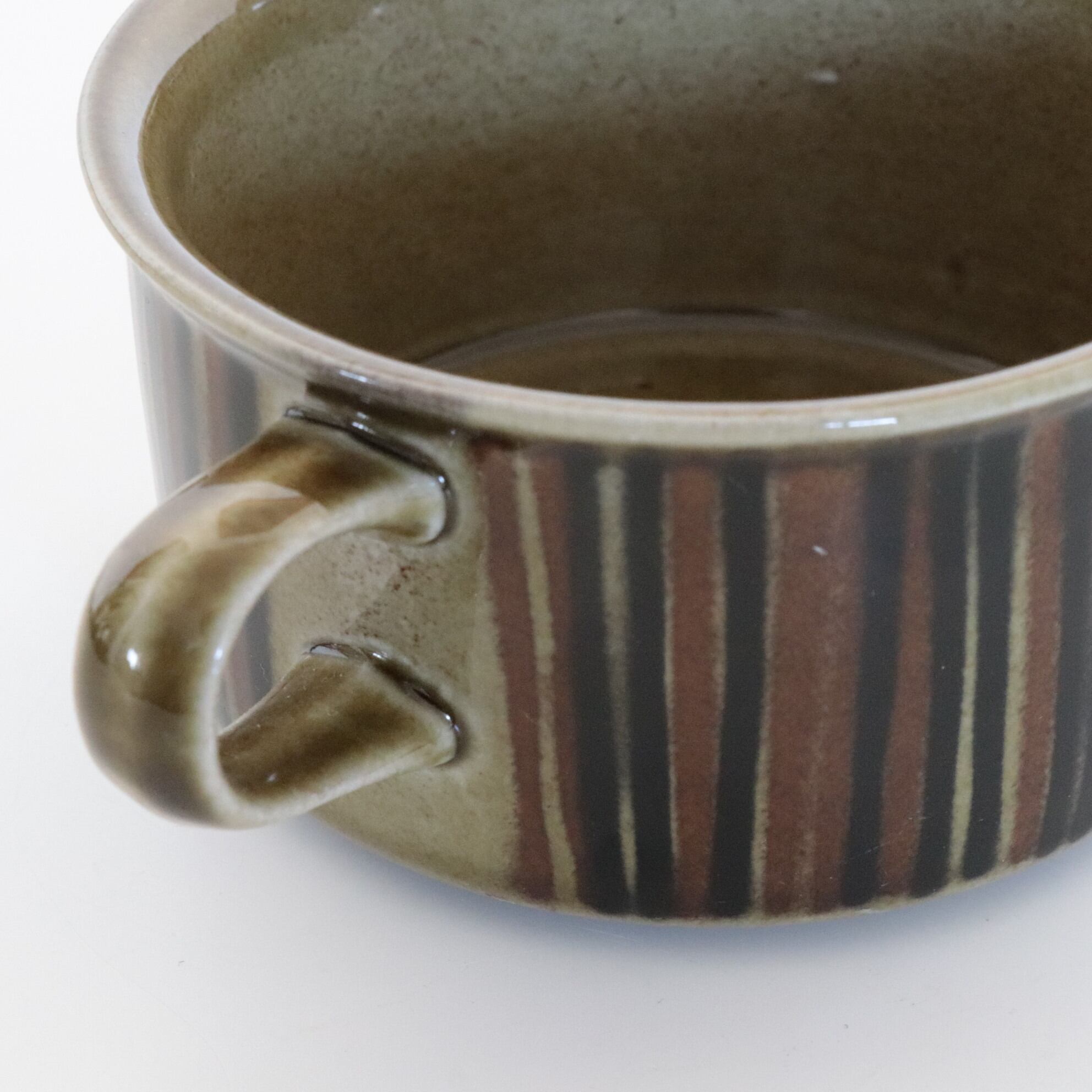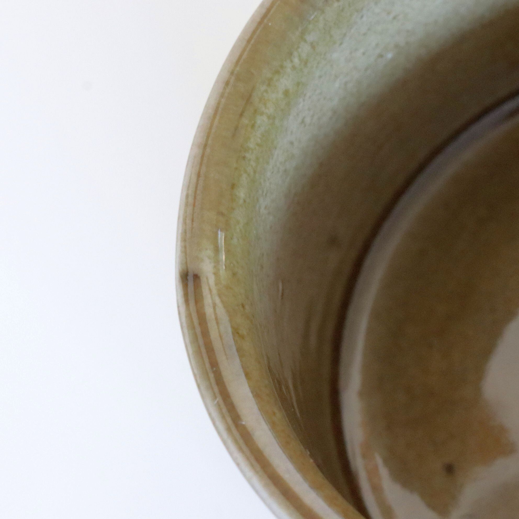 ステンシル印刷と釉薬で描かれた表情は輪郭がはっきりとしておらず、曖昧な表情が穏やかで美しい作品です。