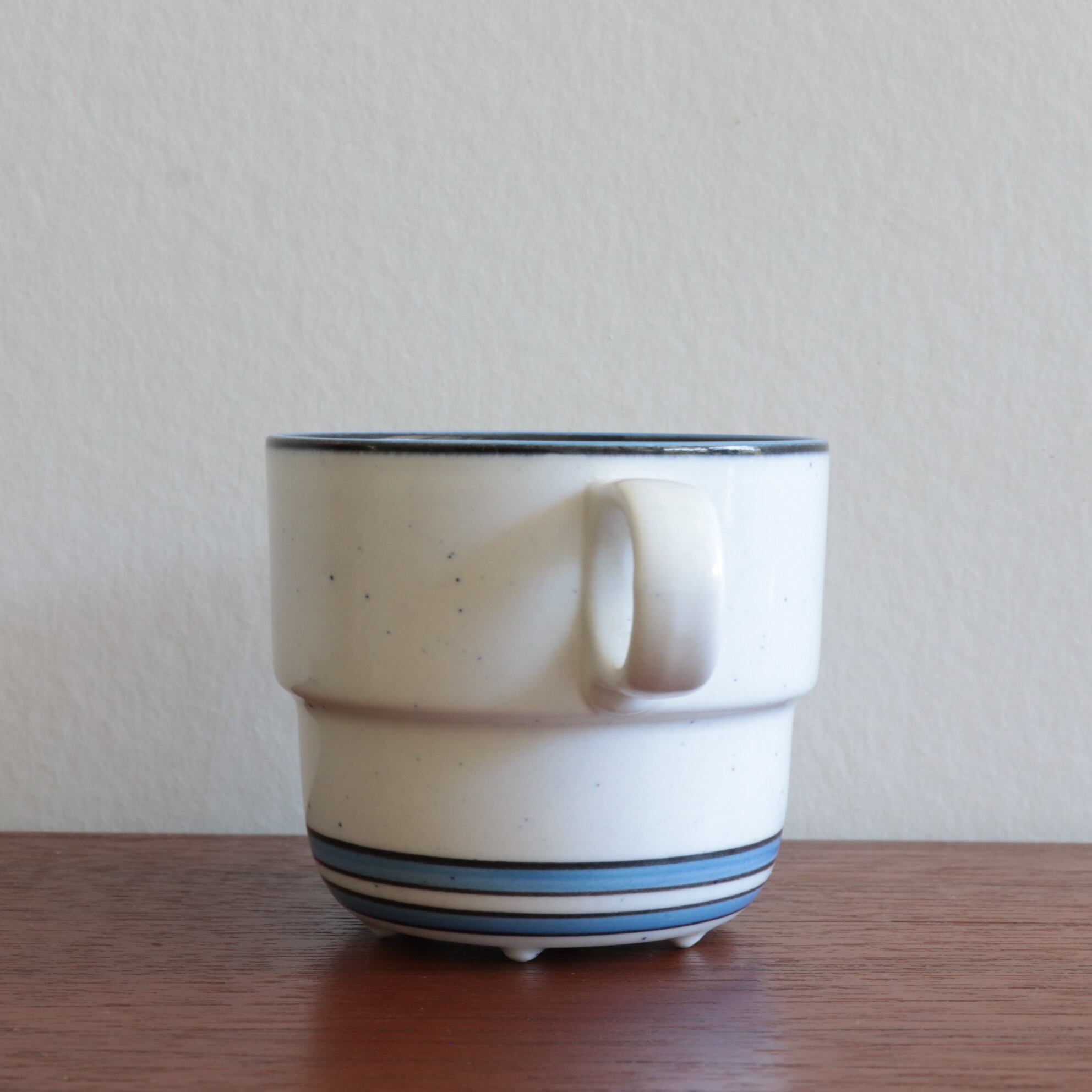 白地にブルーのシンプルな構成で、スタッキング(重ね置き)できるなど実用的なフォルムもあいまって高い人気となったシリーズです。2サイズのカップ&ソーサー、プレート、ボウル、クリーマー、ソースパンやフラワーポットなど幅広いフォルムが製作されています。