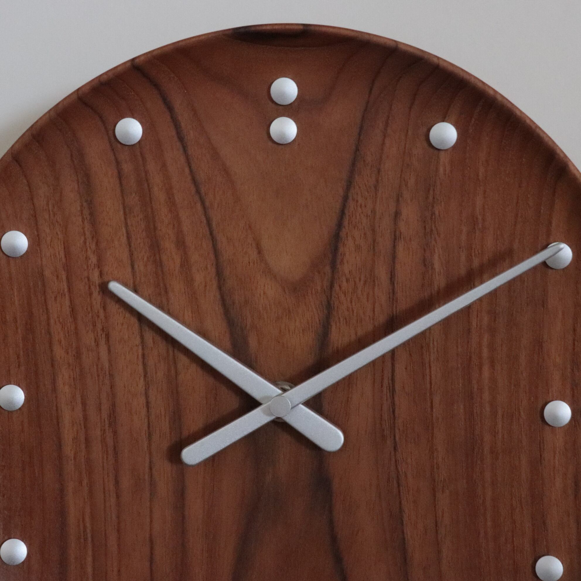 フィン・ユールは、1950年にニューヨーク国連信託統治理事会会議場のインテリアの一部として、FJクロックをデザインしました。円形で凹んだ形状は、チーク材の自然な性質を引き立て、分針と時針も、木製の表面に沿ってわずかにカーブしています。アルミニウムのドットはフィン・ユールのミニマリズムのセンスを表現しており芸術品と呼ぶにふさわしいものです。