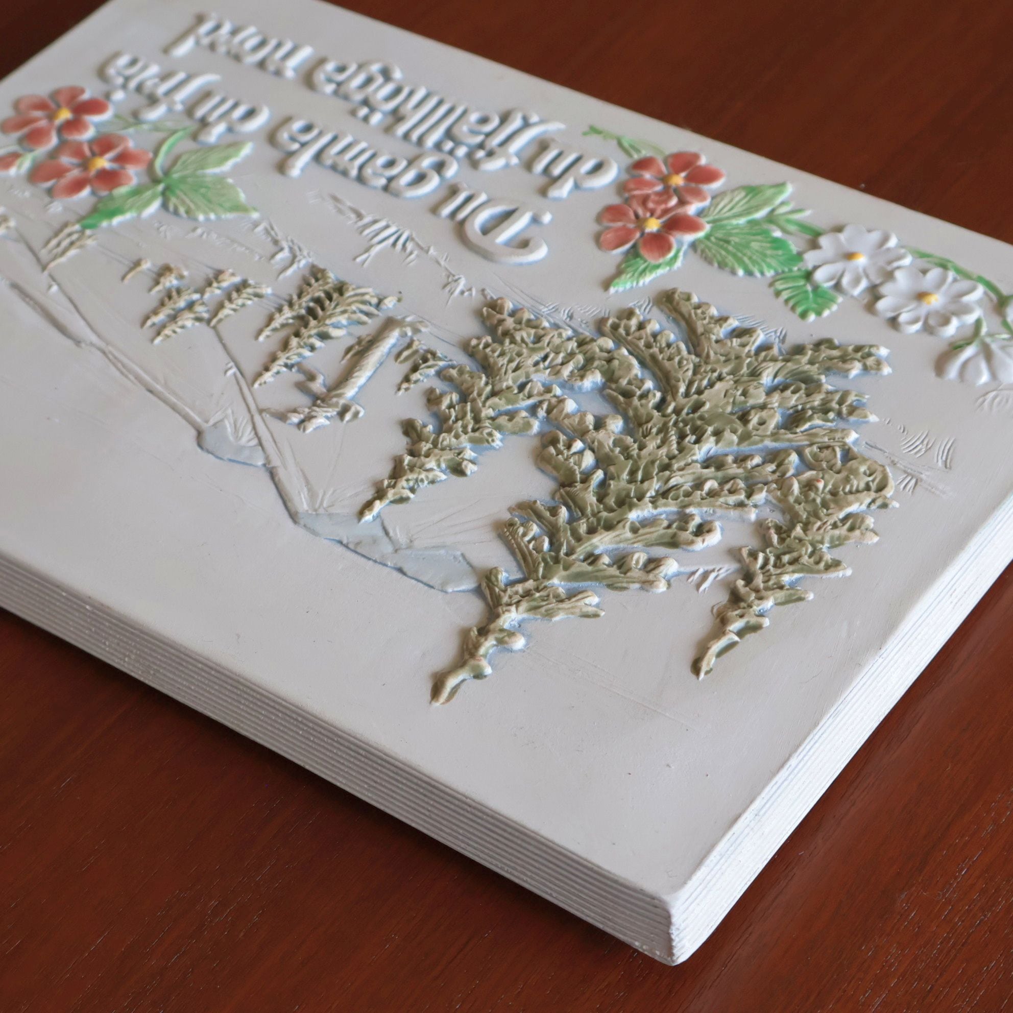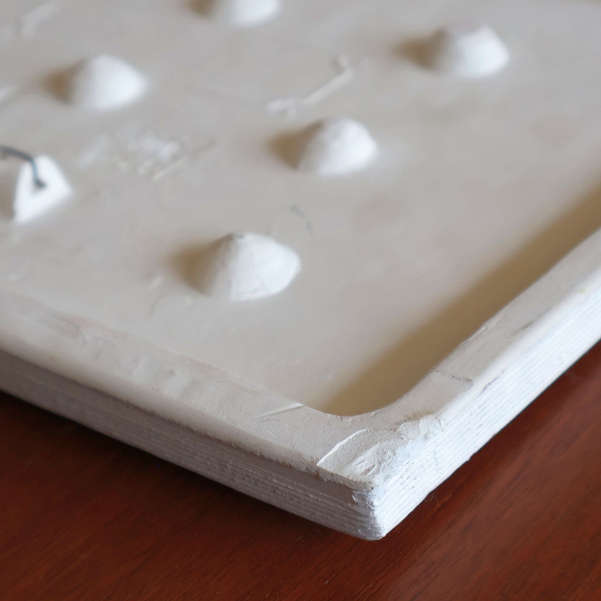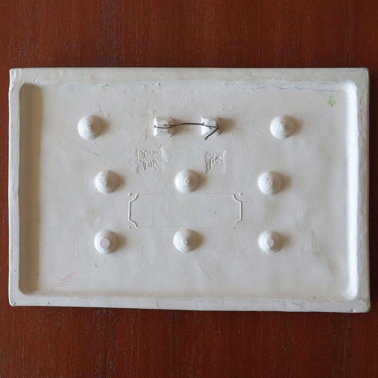 同社陶板の特徴として、製造時にコテやヘラによる成型時の凹凸、焼成時の釉薬抜け・色とび、また製造後の小さな欠けなどが比較的おきやすいアイテムとなります。また同じモチーフの製品でも製造時の個体差により若干のサイズ差が見られる工房となります。