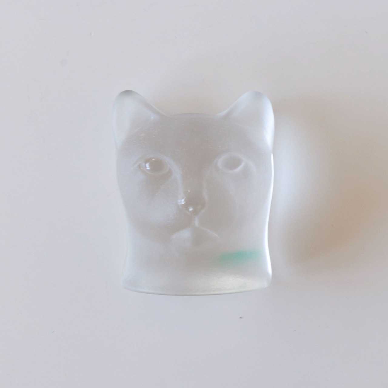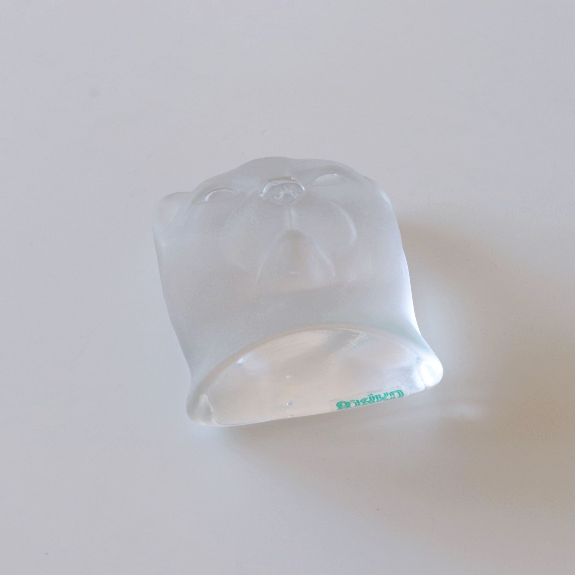 Nybro社は1935年創業のスウェーデンの老舗ガラスメーカーで、アートガラスやテーブルウェアで国際的に評価されています。この作品は目と鼻先がクリアガラスで、それ以外がフロストガラスで製作されています。