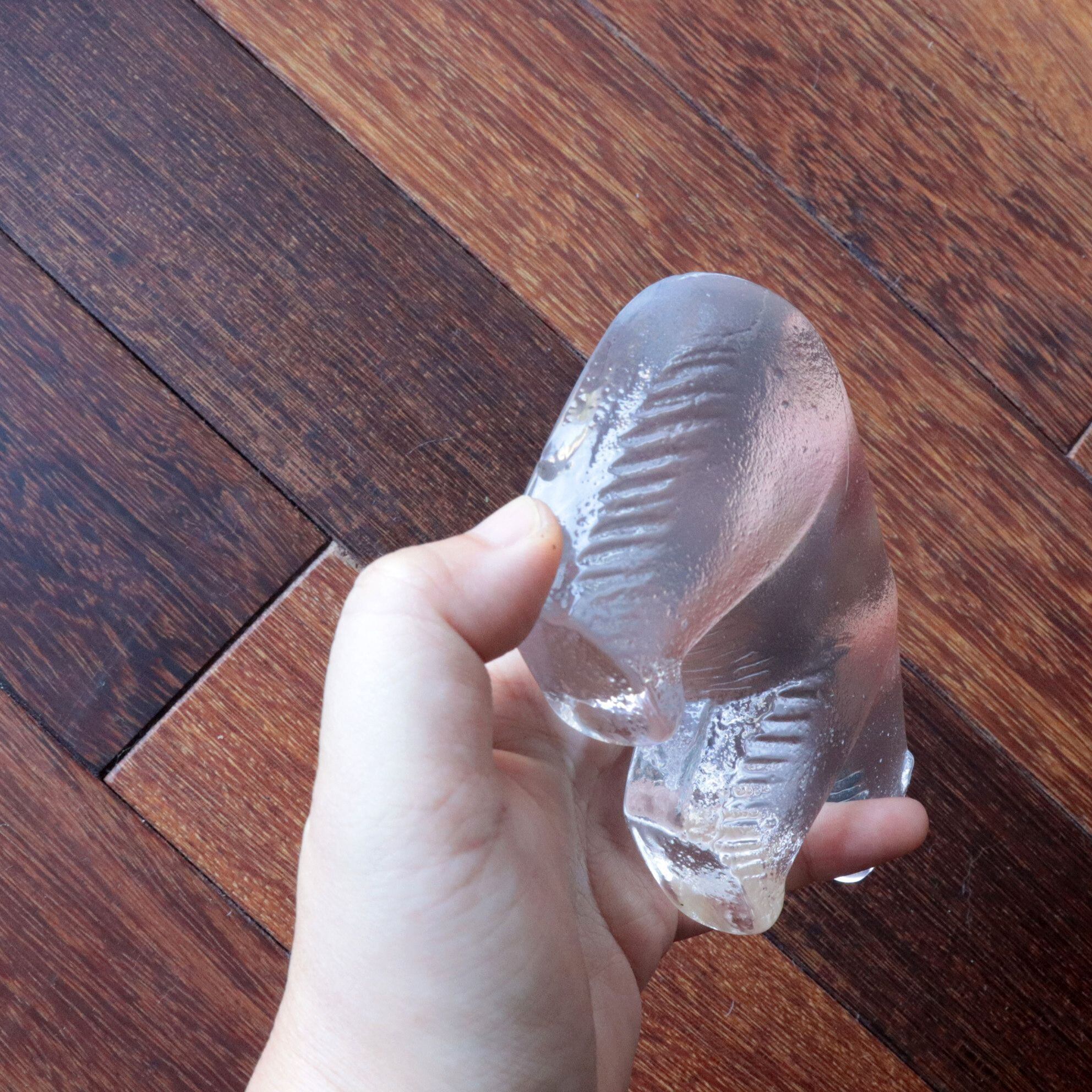 同社のガラスフィギュア作品は背面からの光を受けやすくするため、背面は平たく仕上がったいます。窓辺などに飾ると外光を受けとても存在感の増す作品です。