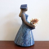 女性の像にはドライフラワーを挿すための穴が2か所前後開けられているものが多く、そこに小さな花を飾ると街角の花売りの少女といった雰囲気の作品が仕上がります。何かの記念の花など、その家庭毎に飾り方が変わりうる北欧らしいヴィンテージ作品です。