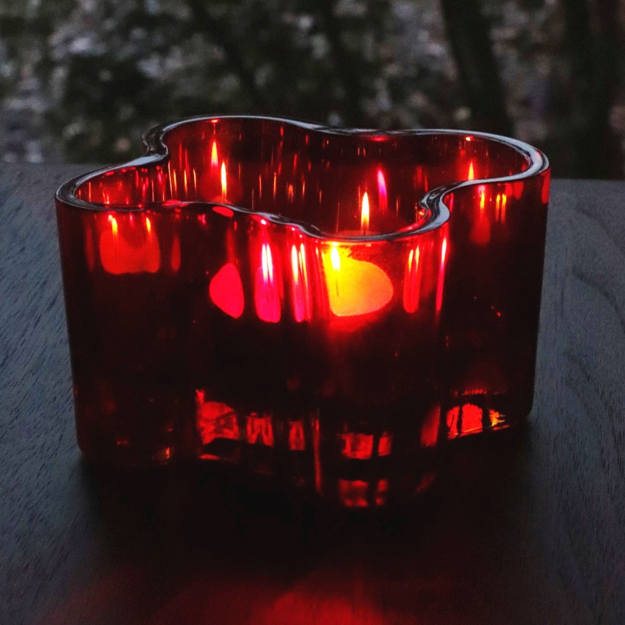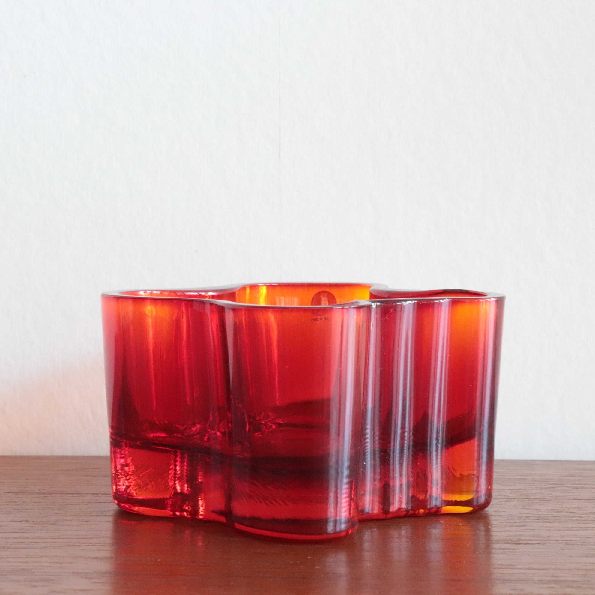 フィンランドのイッタラで2020年まで製作されたいたAalto Collectionのキャンドルホルダー、フレーミングレッド。アルヴァ・アアルトがデザインしたアアルト・ベースのフォルムデザインから生まれたアイテムです。