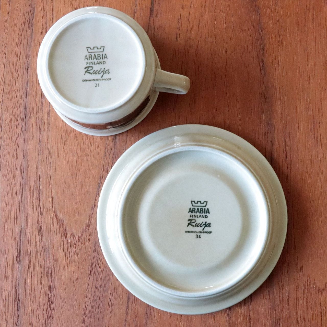 1975-81年の間、フィンランドのARABIAで製作されたRuija(ルイヤ)。 ウッラ・プロコペ(Ulla Procope)がフォルムデザイン、ライヤ・ウオシッキネン(Raija Uosikkinen)がデコレーションデザインをしたシリーズです。
