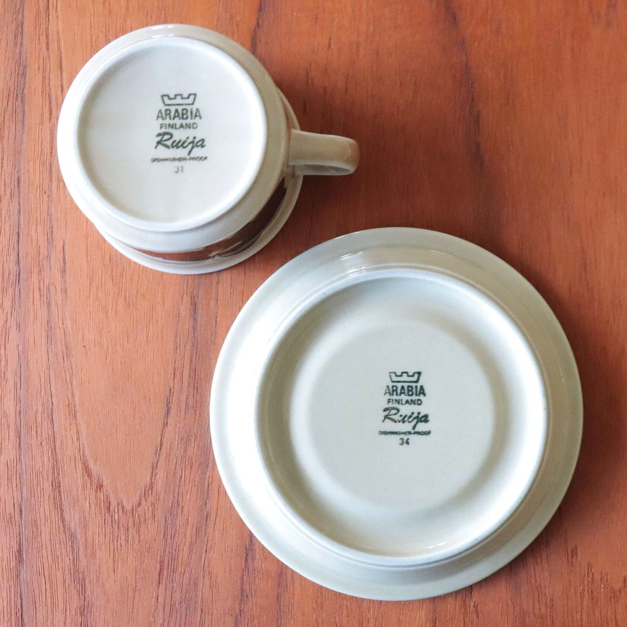 1975-81年の間、フィンランドのARABIAで製作されたRuija(ルイヤ)。 ウッラ・プロコペ(Ulla Procope)がフォルムデザイン、ライヤ・ウオシッキネン(Raija Uosikkinen)がデコレーションデザインをしたシリーズです。