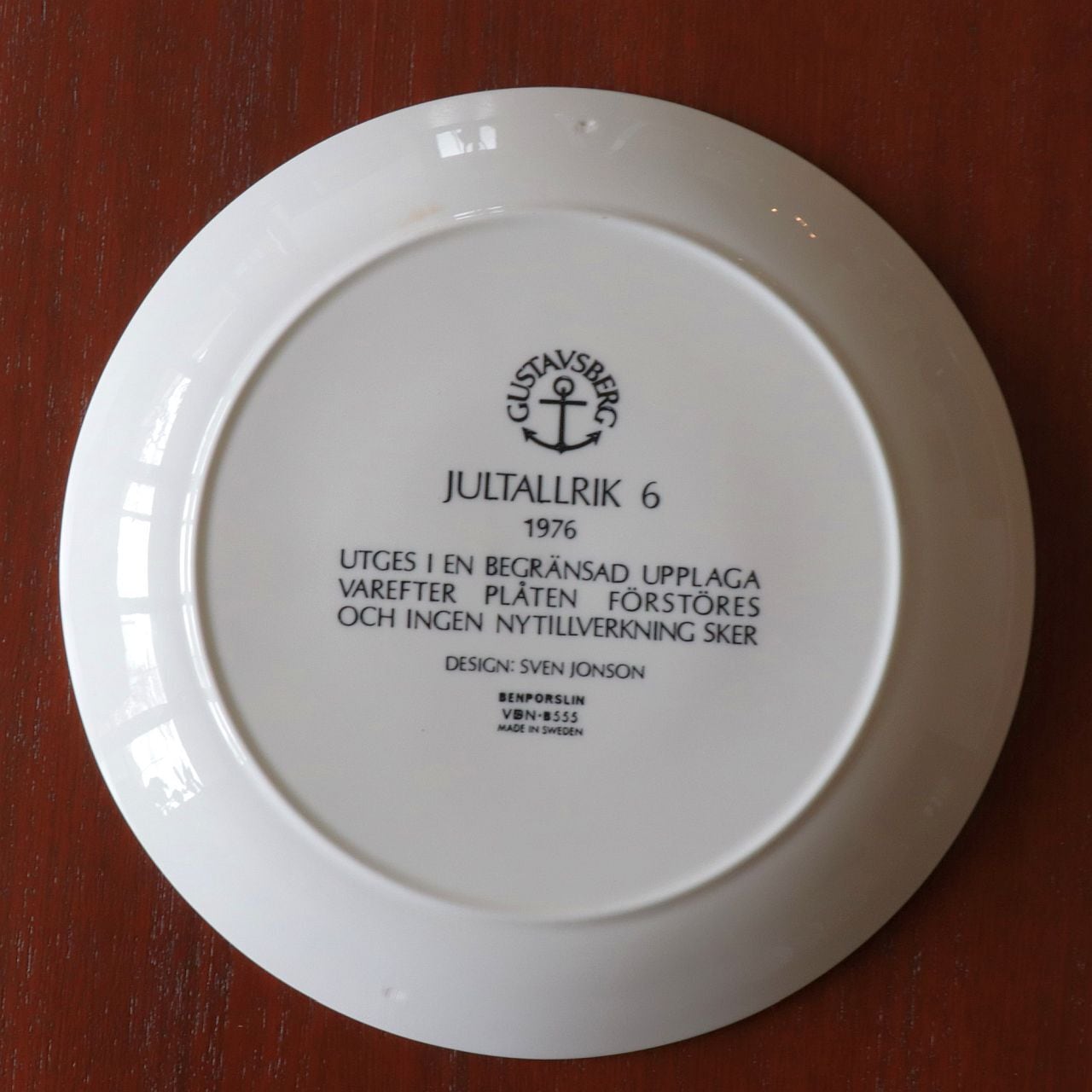 スウェーデンのグスタフスベリで製作されたイヤー(クリスマス)プレート。1971-80年はSven Jonson(スヴェン・ヨンソン)がデザインを担当しています。