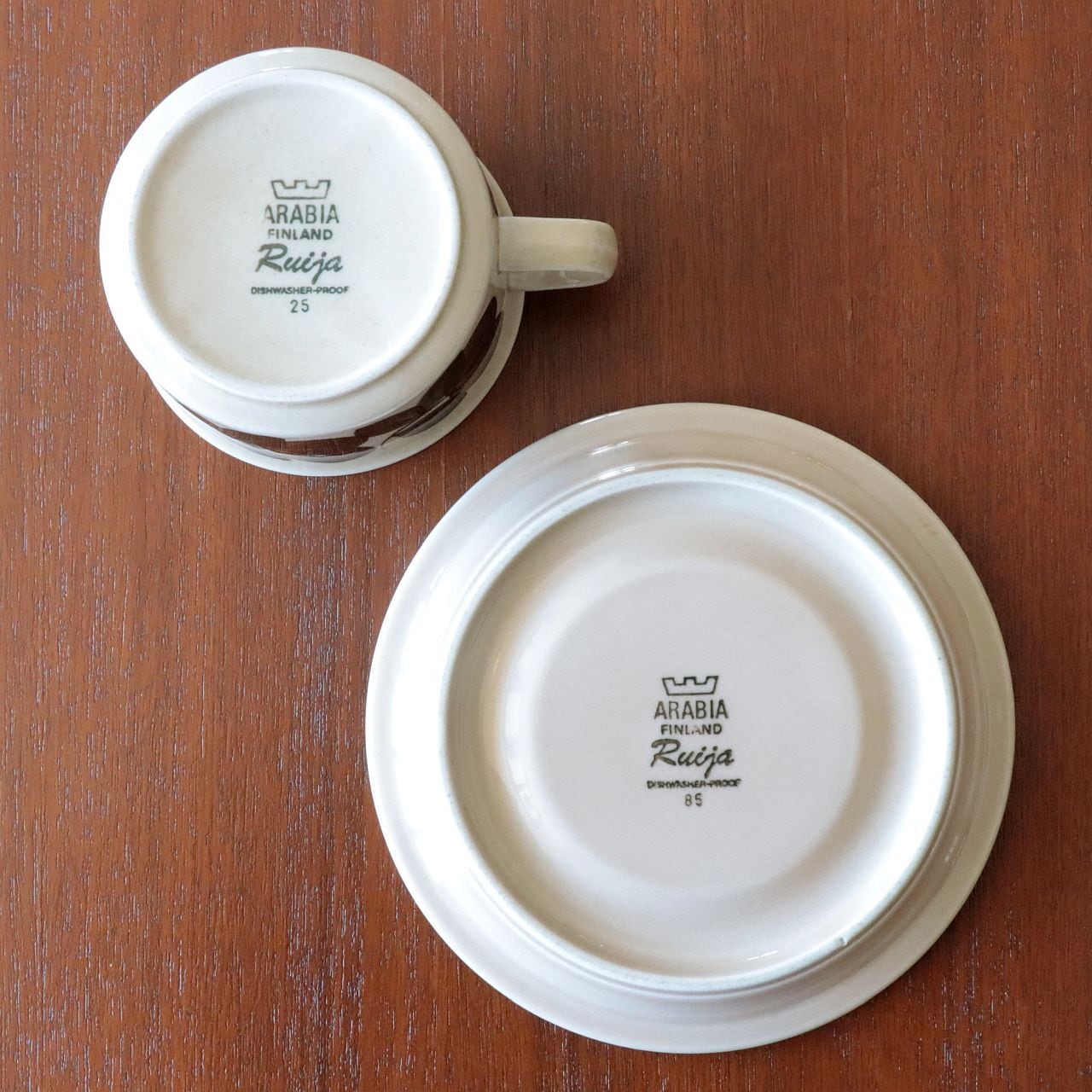 1975-81年の間、フィンランドのARABIAで製作されたRuija(ルイヤ)。 ウッラ・プロコペ(Ulla Procope)がフォルムデザイン、ライヤ・ウオシッキネン(Raija Uosikkinen)がデコレーションデザインをしたシリーズです。