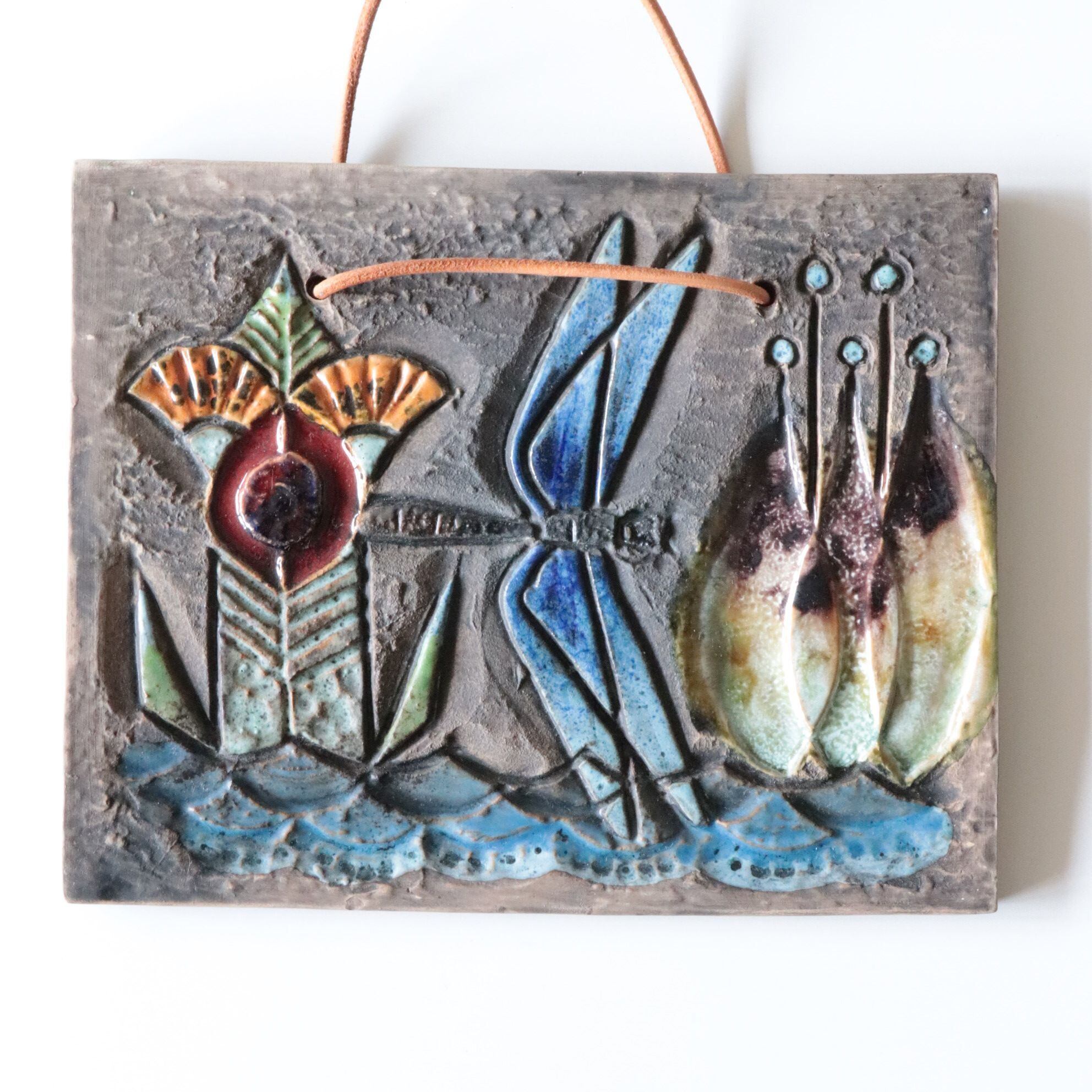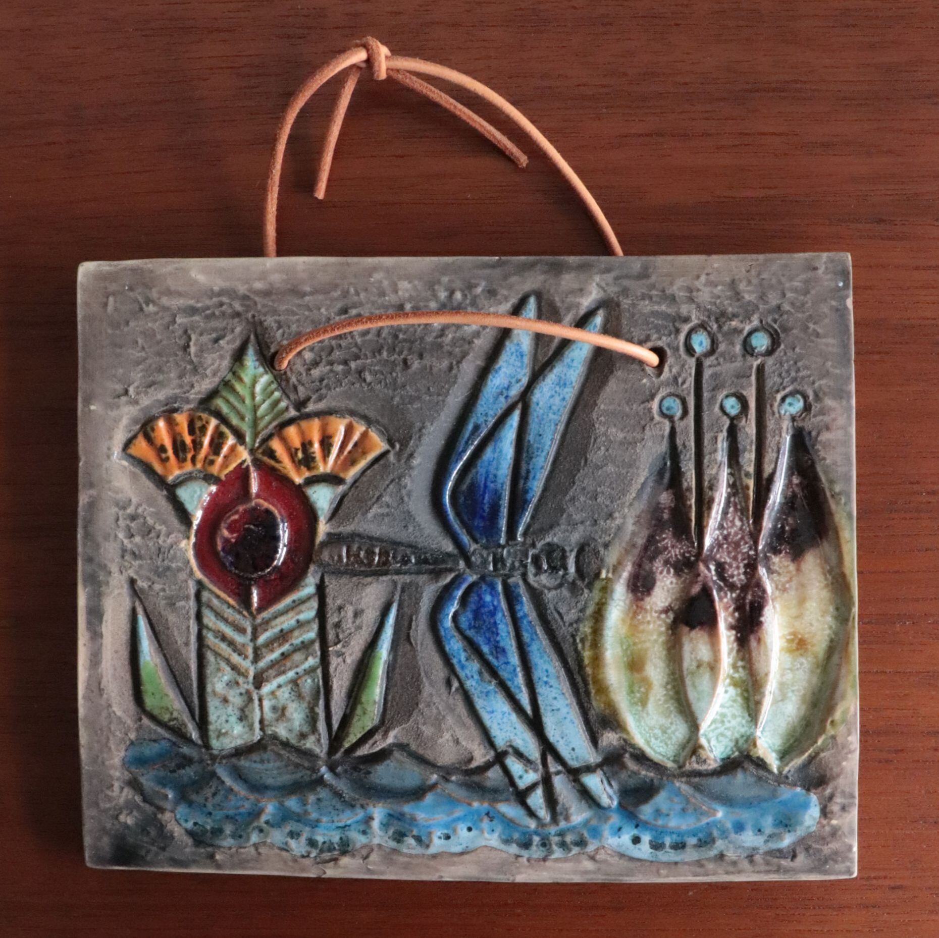 【c8005】トンボの陶板 (22cm)[Tilgmas Keramik / Sweden]
