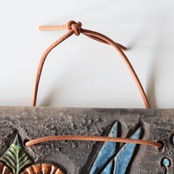 同社陶板の特徴として、製造時にコテやヘラによる成型時の凹凸、焼成時の釉薬抜け・色とび、また製造後の小さな欠けなどが比較的おきやすいアイテムとなります。また同じモチーフの製品でも製造時の個体差により若干のサイズ差が見られる工房となります。