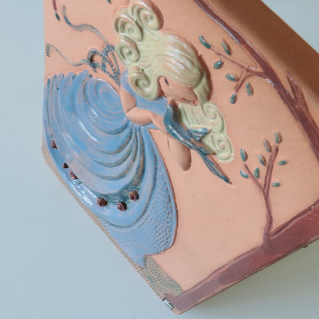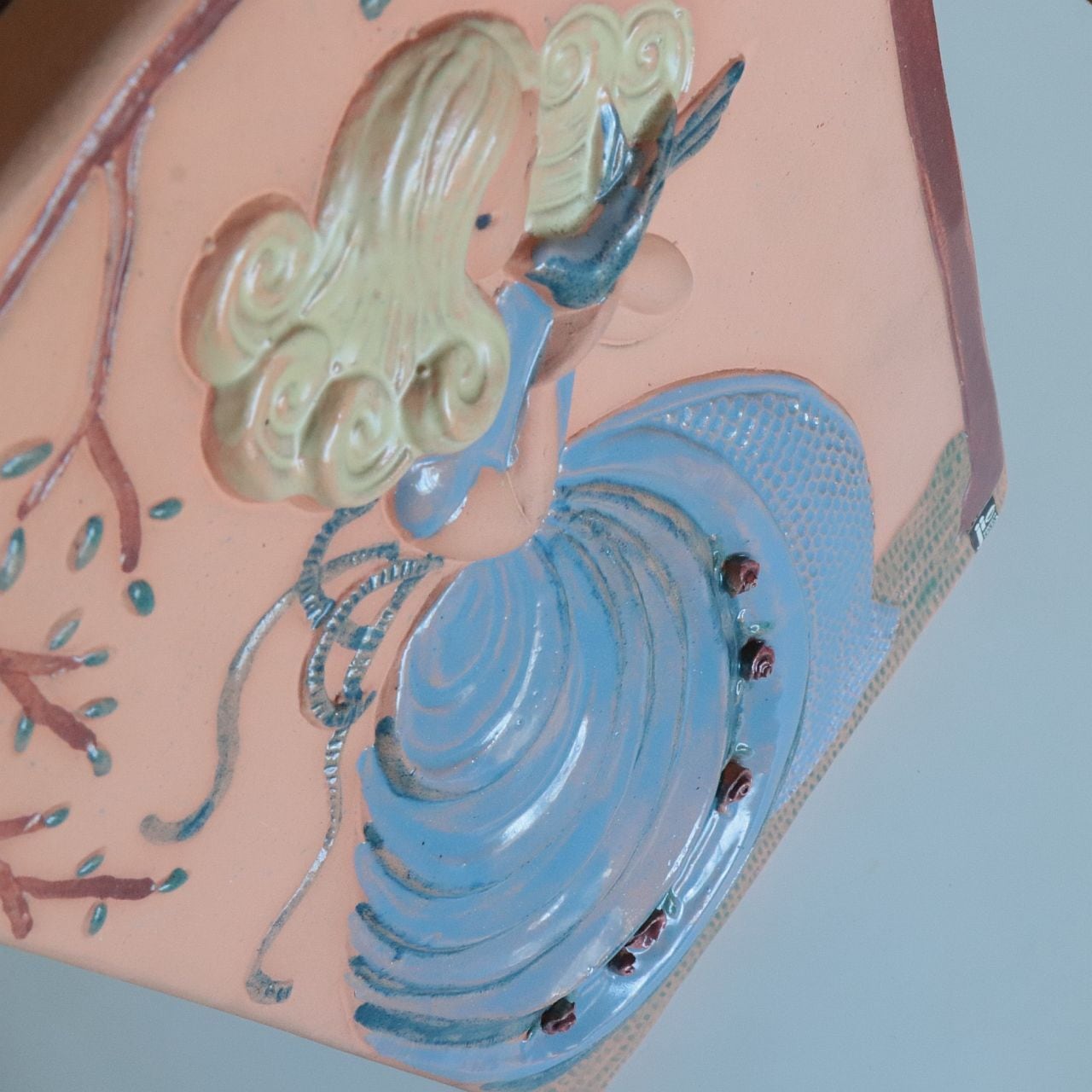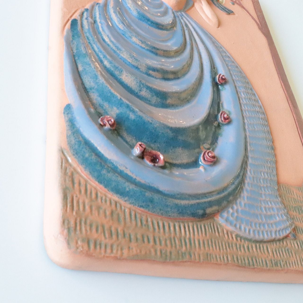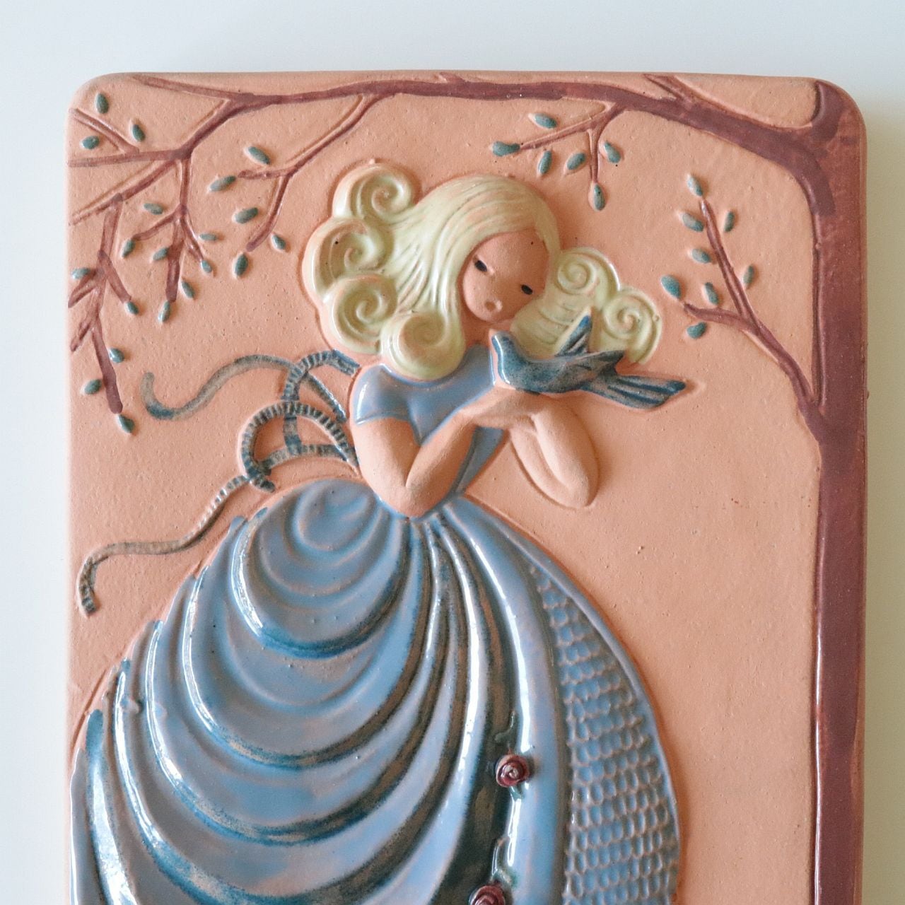 【c8001】少女と青い鳥の陶板(29.5㎝) [Jie Gantofta/Sweden]