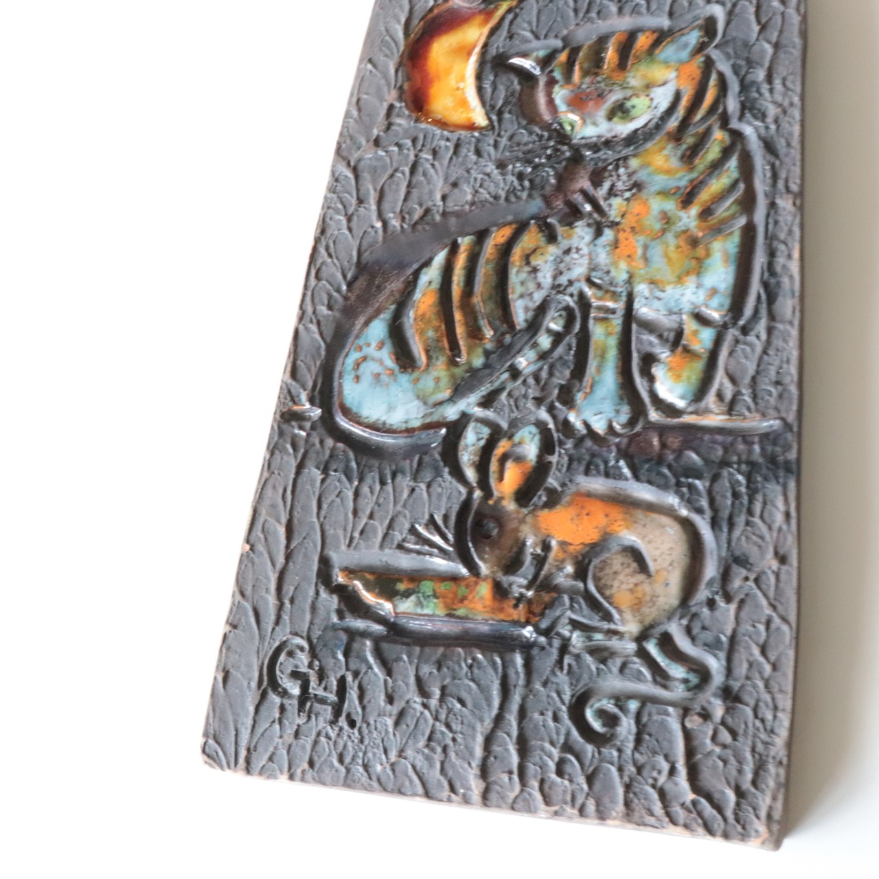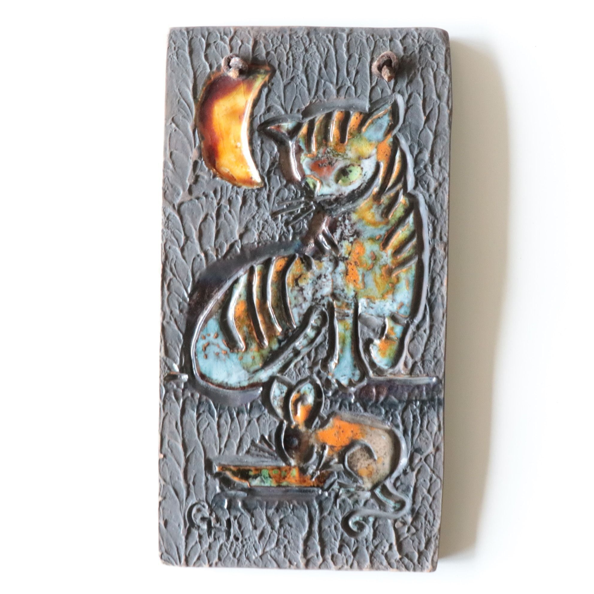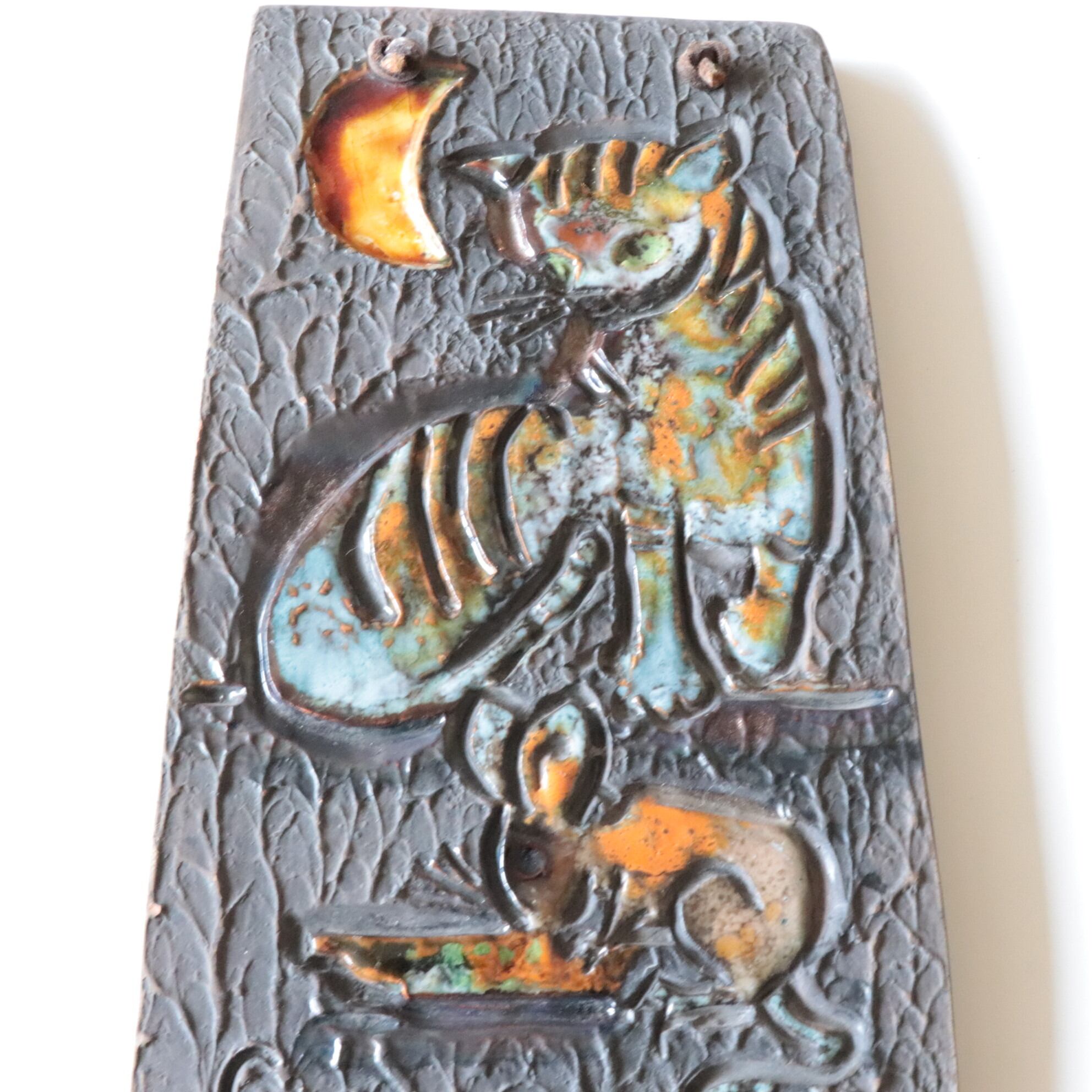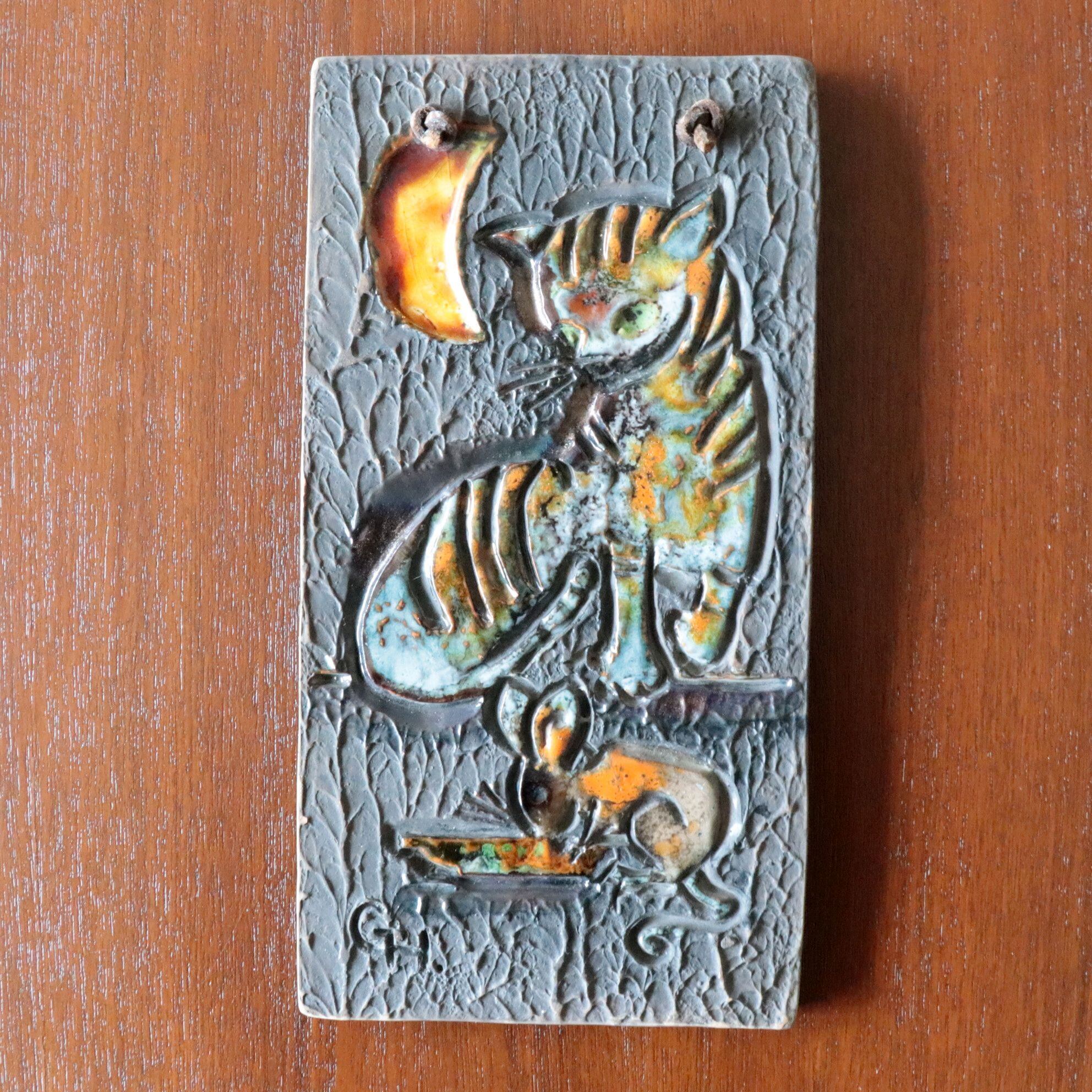 【c8006】ネコとネズミの陶板(24.5cm) [Tilgmas Keramik / Sweden]