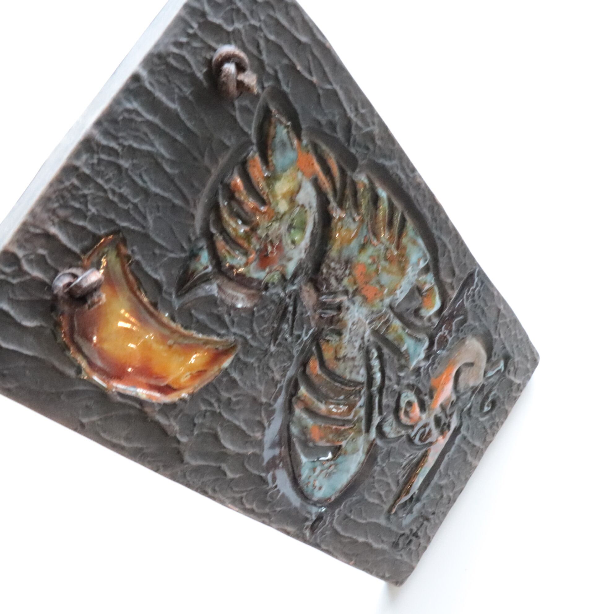 同社陶板の特徴として、製造時にコテやヘラによる成型時の凹凸、焼成時の釉薬抜け・色とび、また製造後の小さな欠けなどが比較的おきやすいアイテムとなります。また同じモチーフの製品でも製造時の個体差により若干のサイズ差が見られる工房となります。