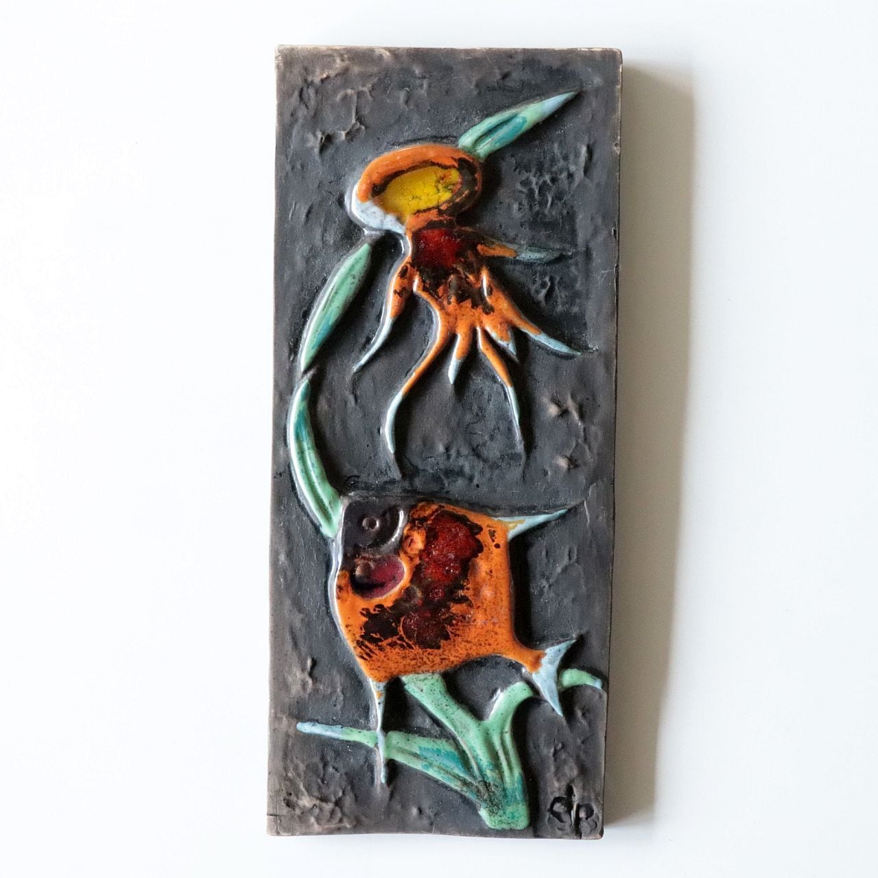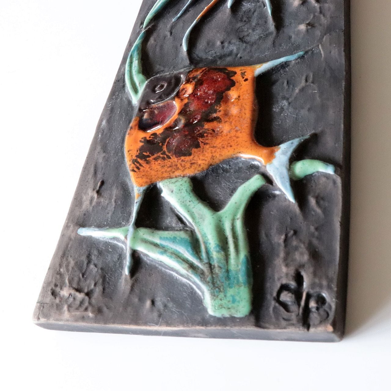 【c8007】クラゲとサカナの陶板(29㎝) [Tilgmas Keramik / Sweden]