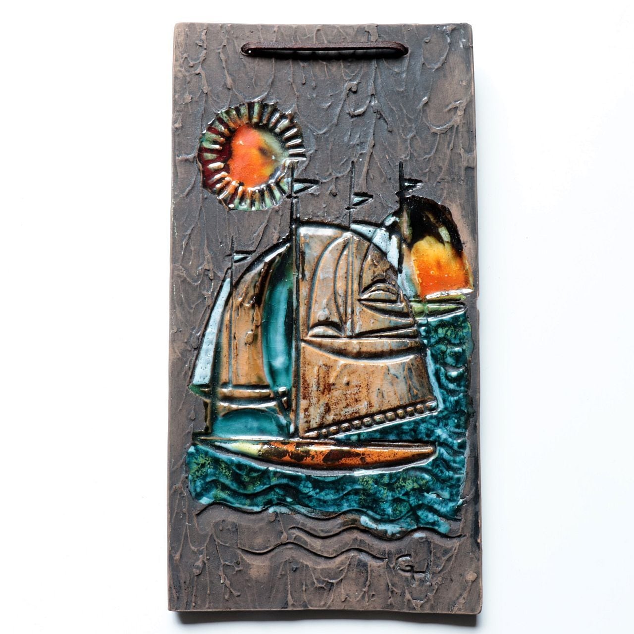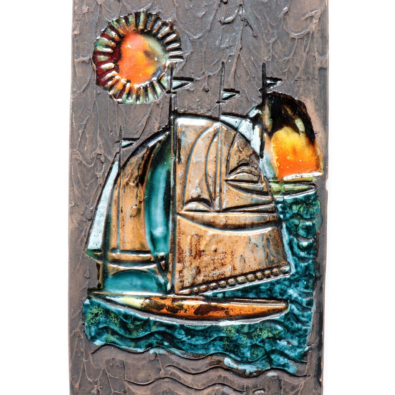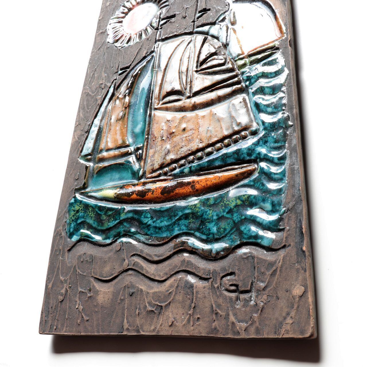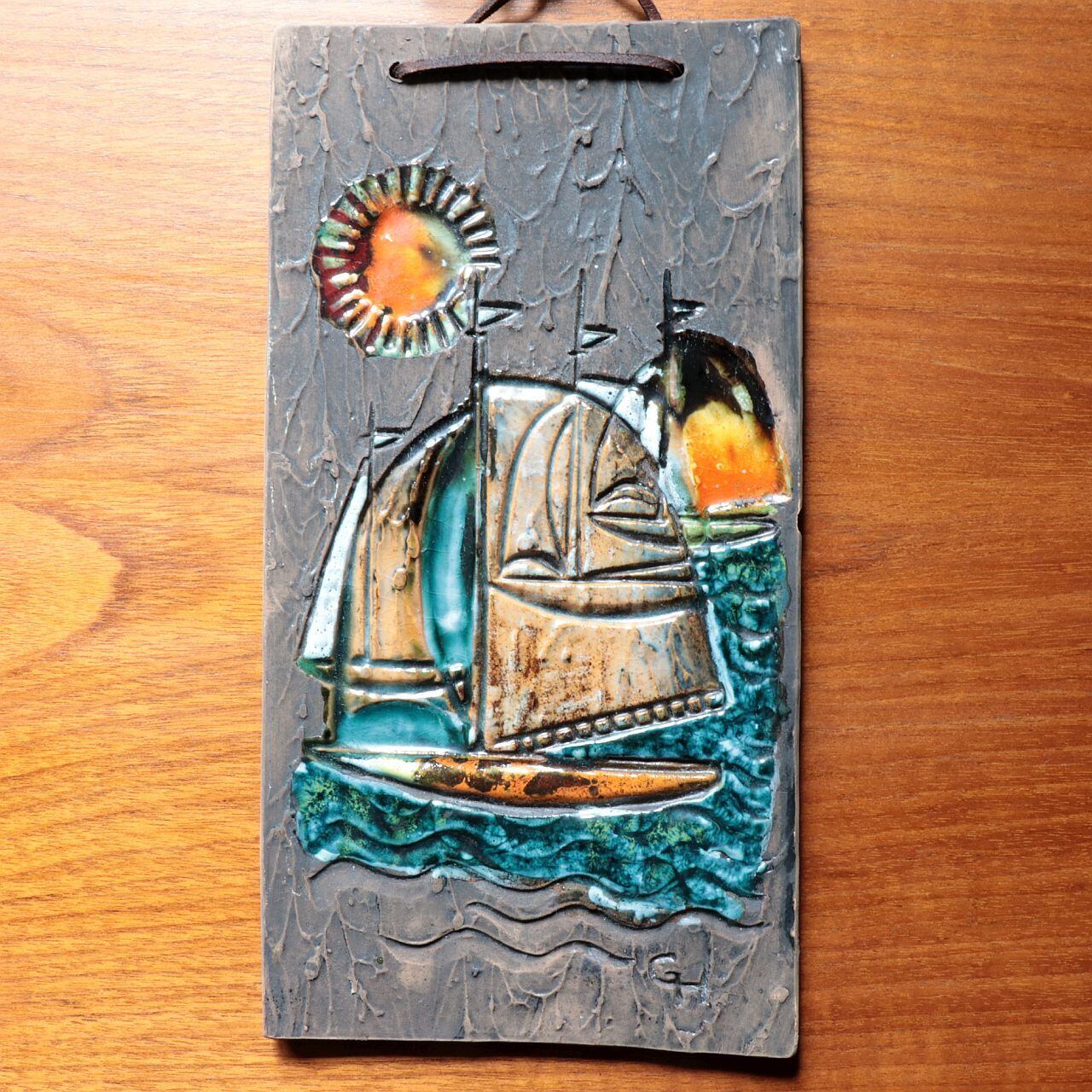 【c8009】ヨットの陶板 (29.8cm)[Tilgmas Keramik / Sweden]