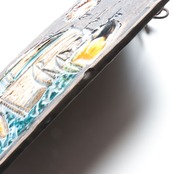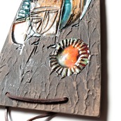 同社陶板の特徴として、製造時にコテやヘラによる成型時の凹凸、焼成時の釉薬抜け・色とび、また製造後の小さな欠けなどが比較的おきやすいアイテムとなります。また同じモチーフの製品でも製造時の個体差により若干のサイズ差が見られる工房となります。