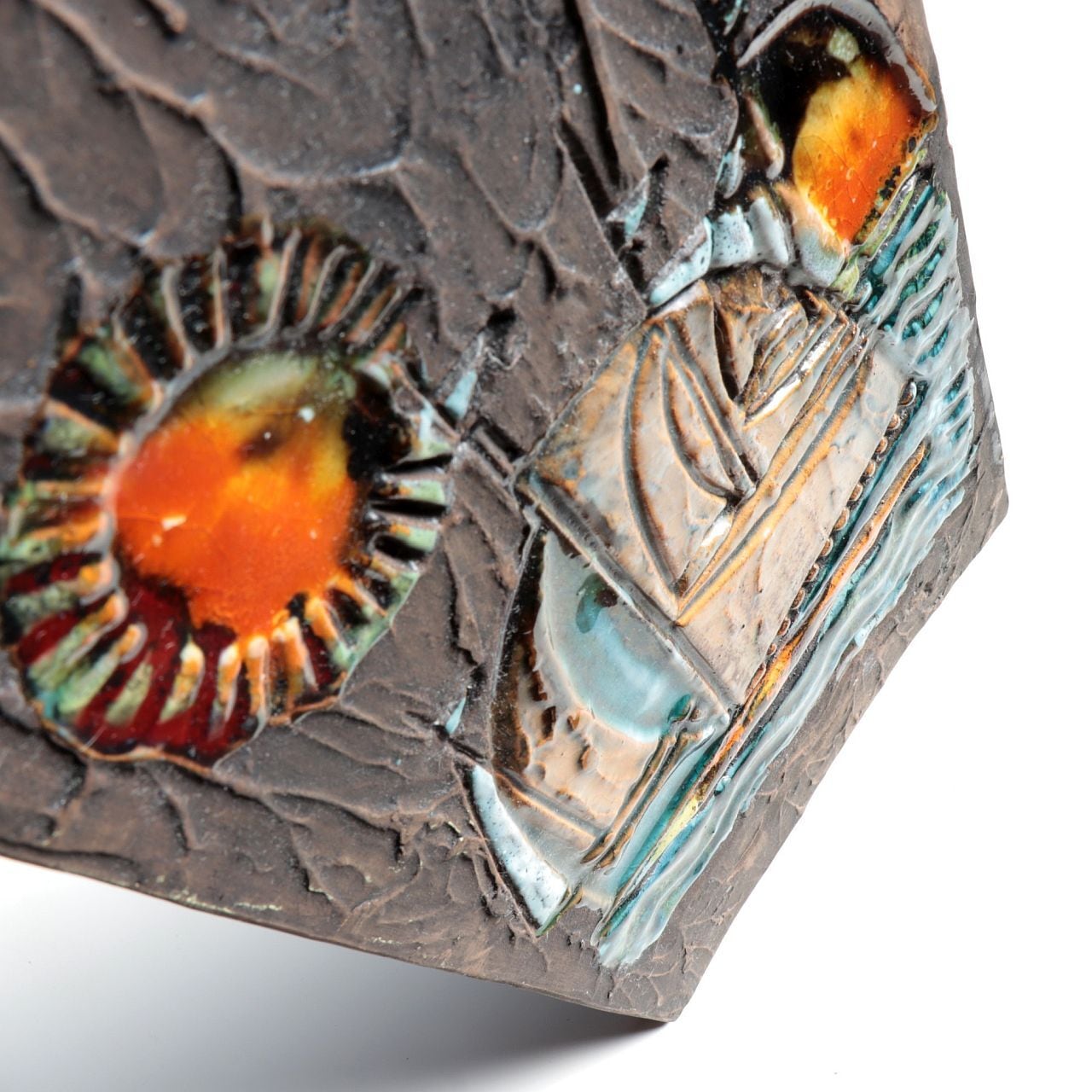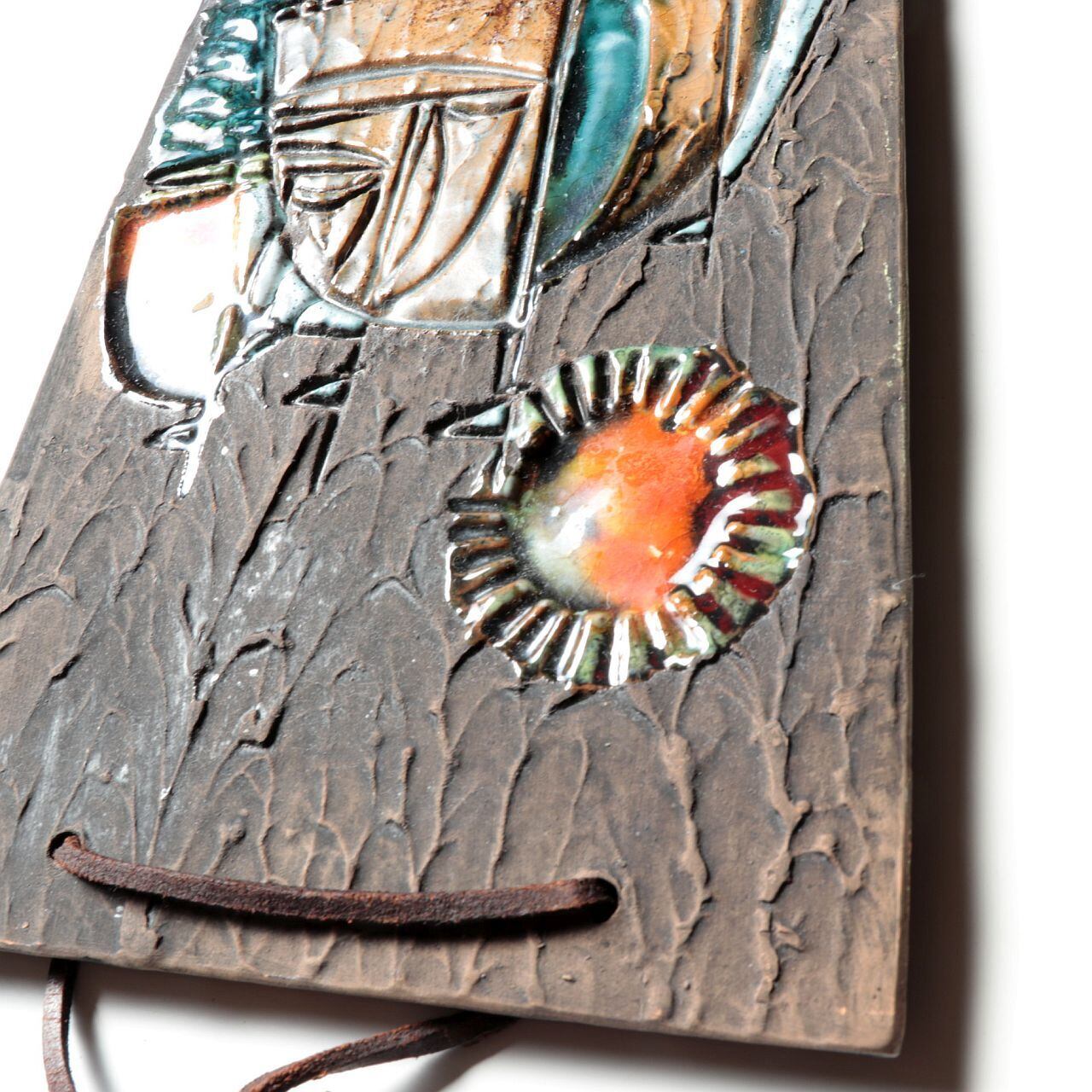 陶板は素朴な土色の素地に、果物や植物、動物などをモチーフにした色鮮やかな釉薬装飾が施されており、素焼きの質感と艶やかな釉薬のコントラストが美しいのが特徴です。バランスよく構成されたデザインは、壁に掛けるだけで空間に温かみとアート性を添えてくれる、一点一点が手作業で仕上げられたオリジナリティの高いアートピースです。
