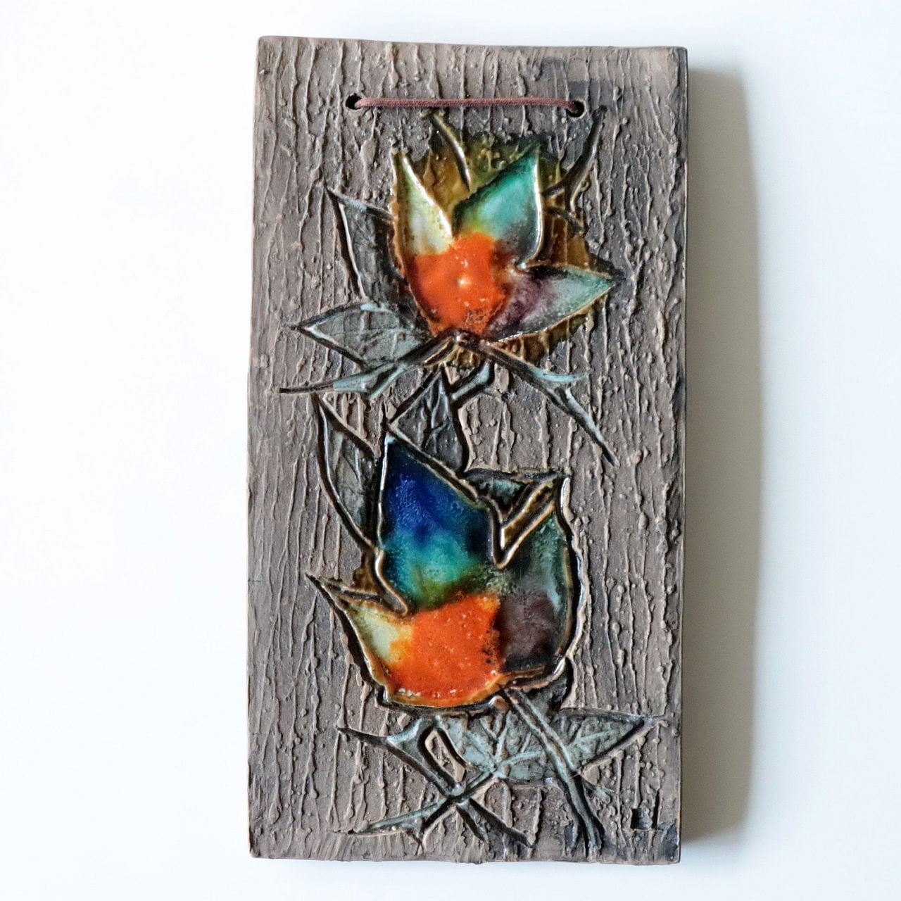 【c8013】花の陶板(30㎝) [Tilgmas Keramik / Sweden]