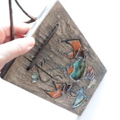 陶板は素朴な土色の素地に、果物や植物、動物などをモチーフにした色鮮やかな釉薬装飾が施されており、素焼きの質感と艶やかな釉薬のコントラストが美しいのが特徴です。バランスよく構成されたデザインは、壁に掛けるだけで空間に温かみとアート性を添えてくれる、一点一点が手作業で仕上げられたオリジナリティの高いアートピースです。
