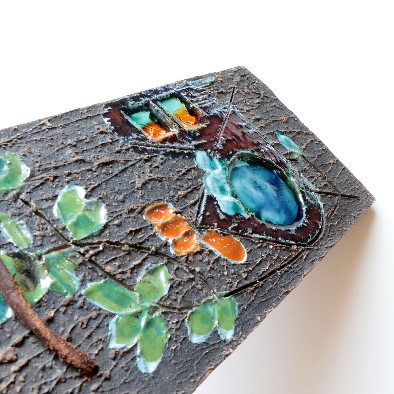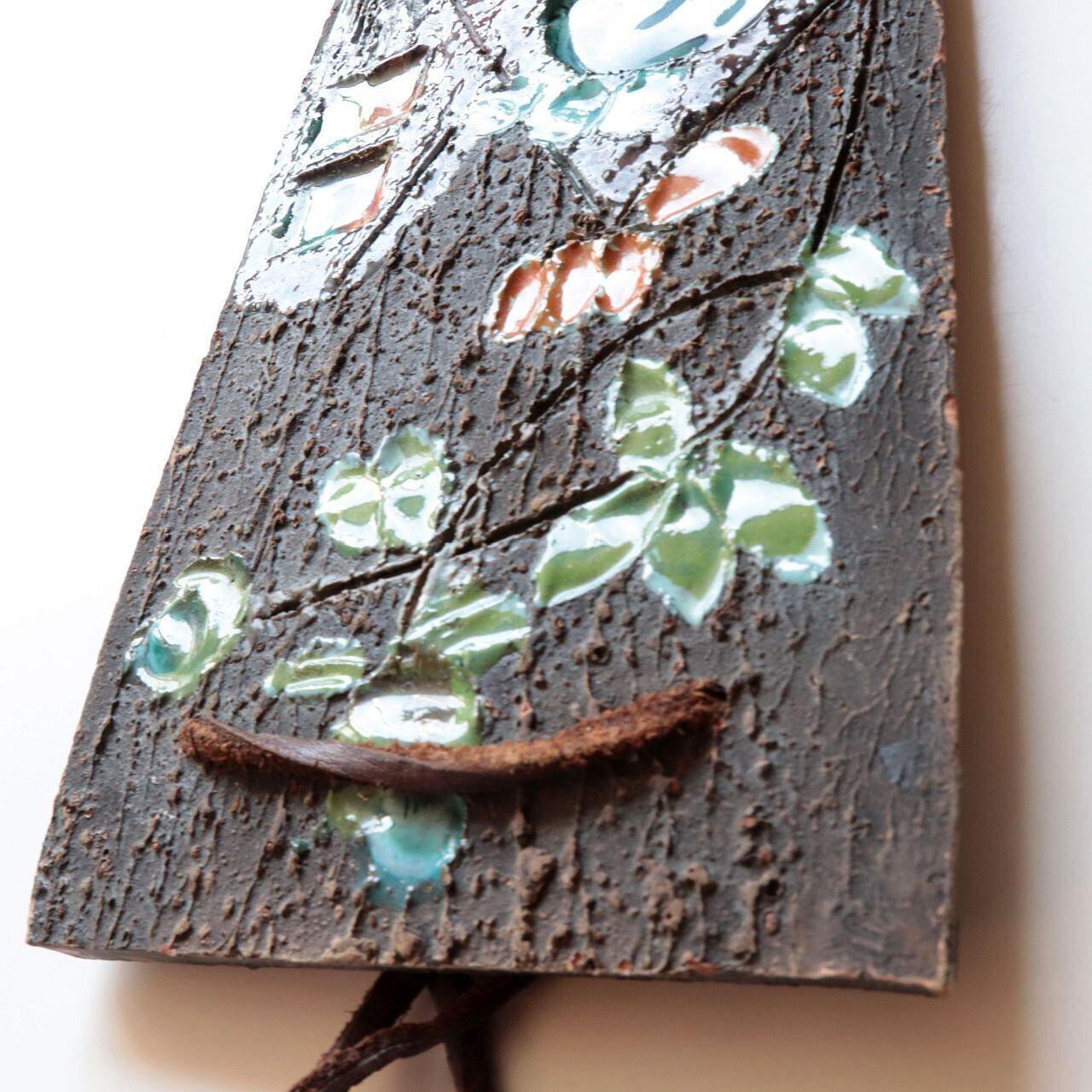 陶板は素朴な土色の素地に、果物や植物、動物などをモチーフにした色鮮やかな釉薬装飾が施されており、素焼きの質感と艶やかな釉薬のコントラストが美しいのが特徴です。バランスよく構成されたデザインは、壁に掛けるだけで空間に温かみとアート性を添えてくれる、一点一点が手作業で仕上げられたオリジナリティの高いアートピースです。