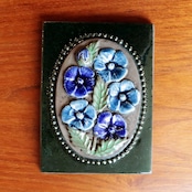同社の代表的デザイナーAimo Nietosvuori による作品で、花を中心に陶板全面に花が描かれています。背面には通し穴と針金が付いていますので、そのまま壁に飾ることも可能です。